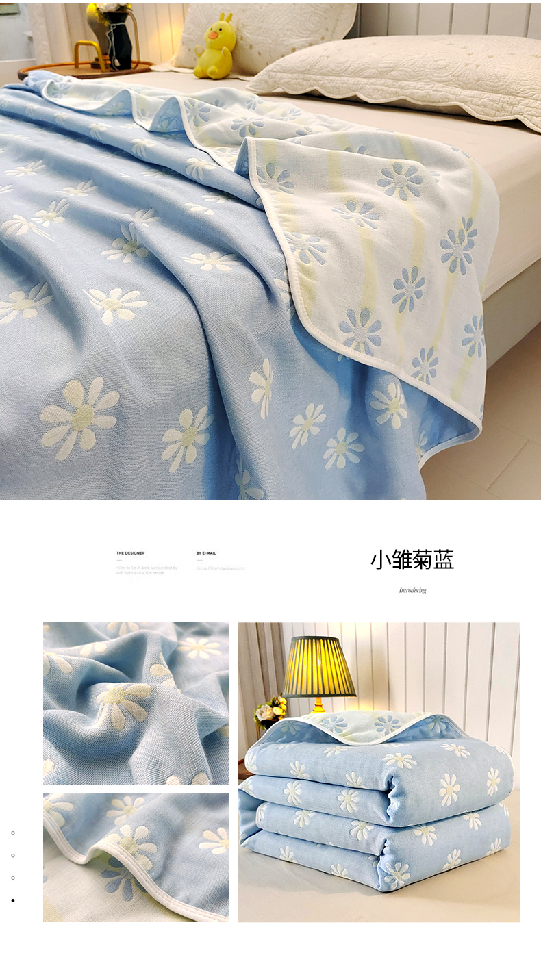 商品名称:静缘分 2026新款全棉纯棉6层纱布毛巾被纯棉六层纱布毯 小雏菊蓝
