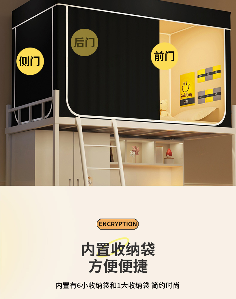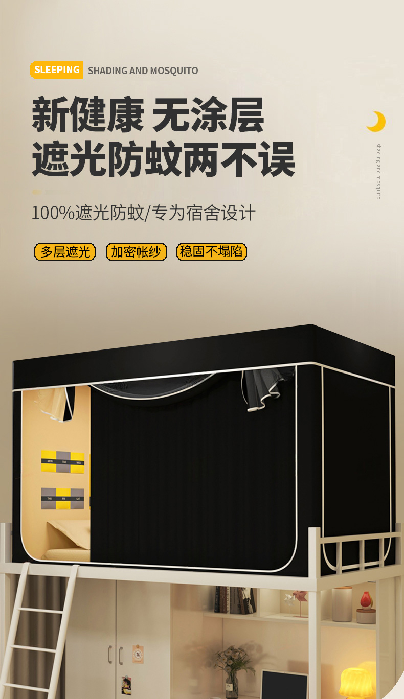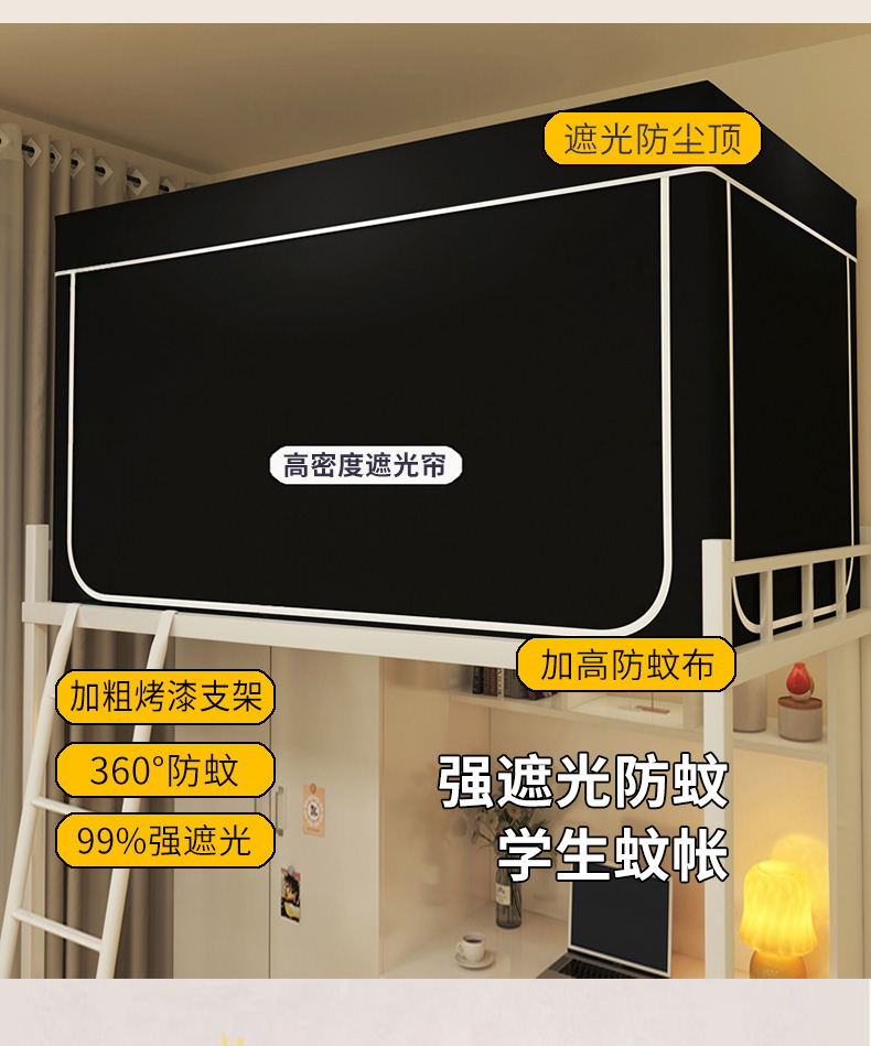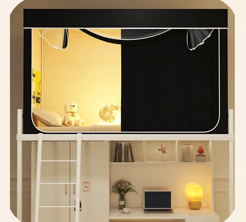 • 91家纺网 家纺一手货源 找家纺 宅部落 2026新款宅部落学生床帘宿舍上下铺印花无涂层强遮光学生蚊帐 纯色-黑色