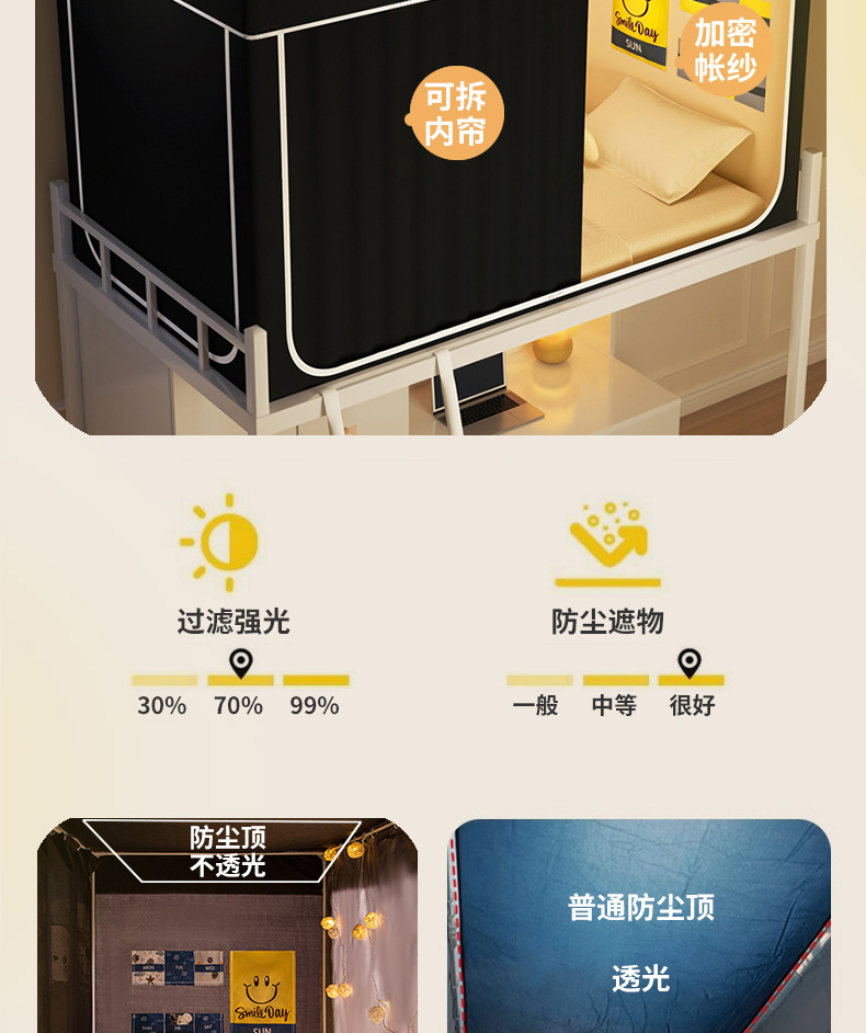 (总)宅部落 2026新款宅部落学生床帘宿舍上下铺印花无涂层强遮光学生蚊帐,纯色-藏蓝色,纯色-淡米黄,纯色-黑色,纯色-灰色,纯色-天蓝色