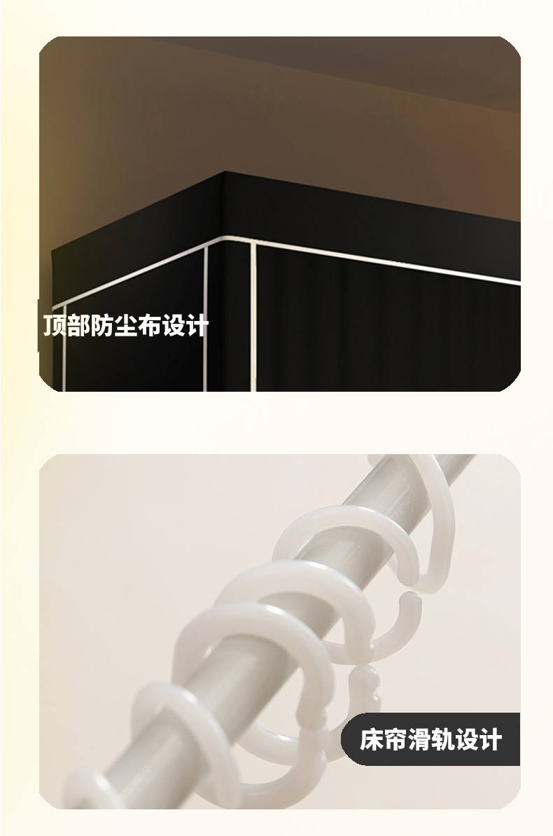 90上下铺通用(带靠墙帘):90宽x190长x90-110高(免安装)一秒打开
