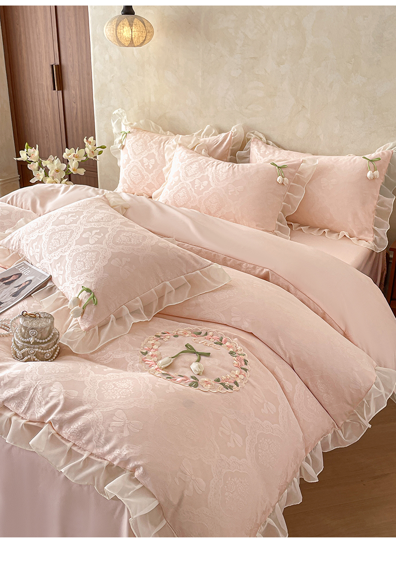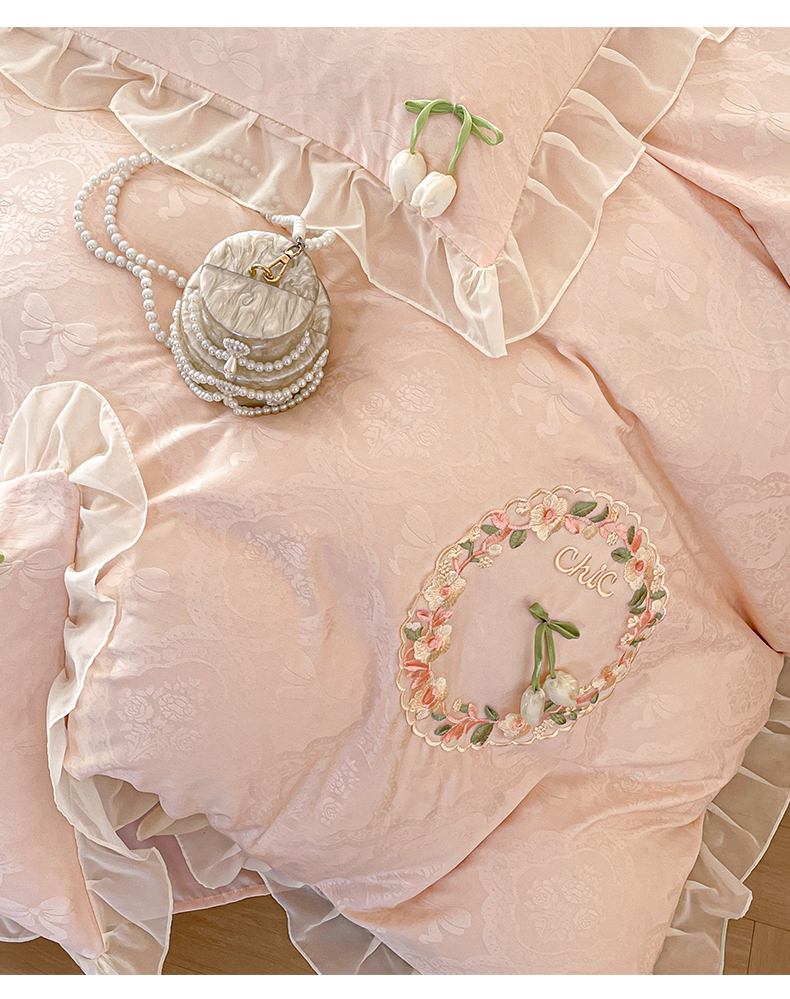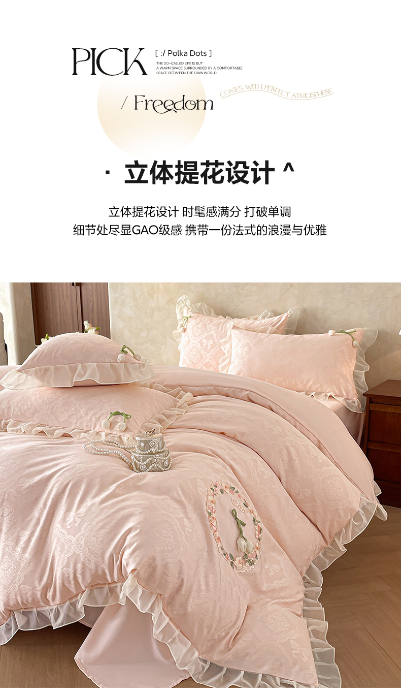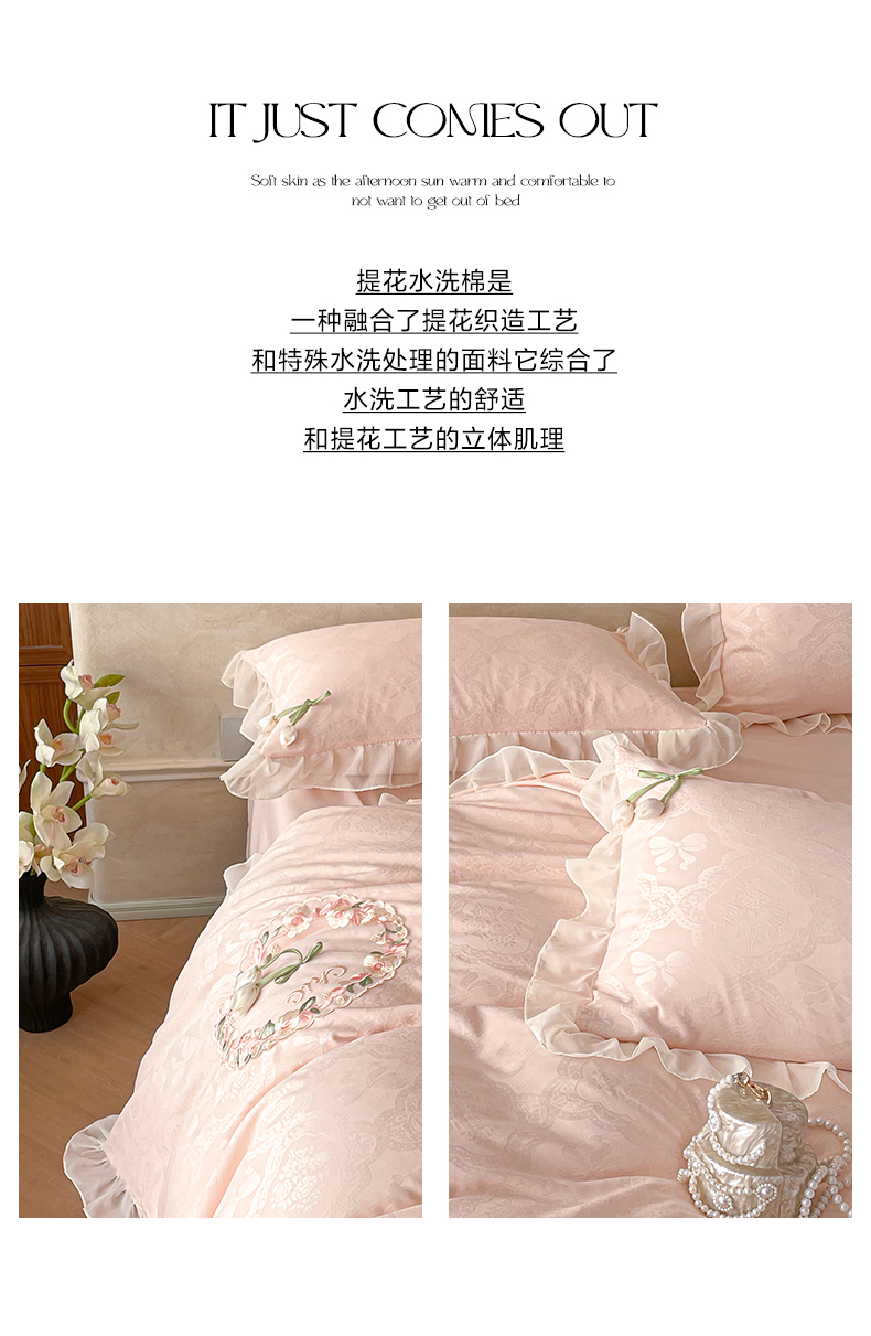当前位置: 91家纺网 > 商品网购 > 床品套件 > 四件套 > 水洗棉四件套 > 易禾家纺 2026春夏新款提花水冼棉刺绣雪纺花边四件套-典雅 典雅-玉