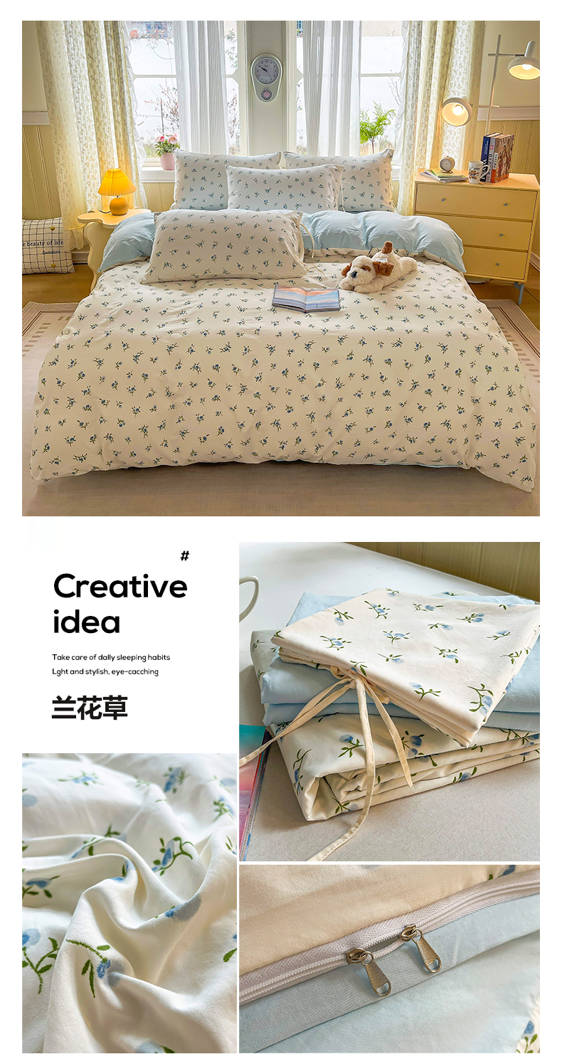 当前位置: 91家纺网 > 商品网购 > 床品套件 > 四件套 > 其它四件套 > 帛洵家纺 2026新款110g超柔水洗宝宝有氧仿棉四件套(提供买家秀) 兰花草