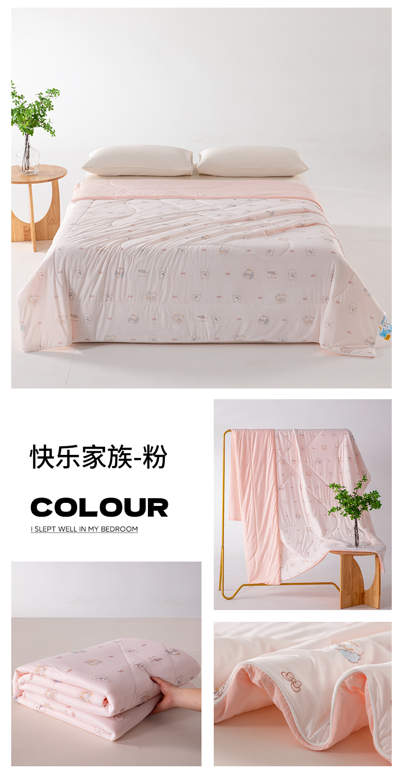 商品名称:卡初家居(原微来) 2026新款A类氨纶水洗冰丝凉感夏被 快乐家族-粉