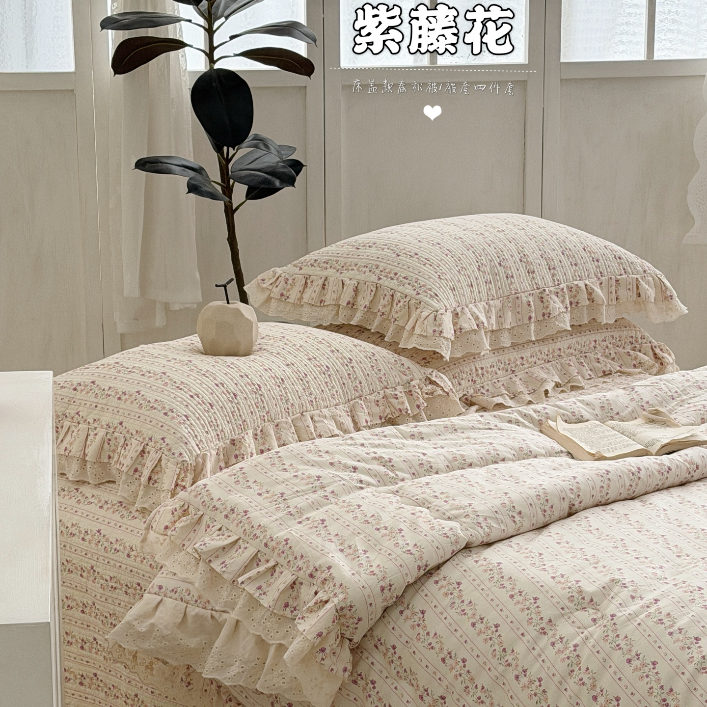 (总)佰织鑫家居 2026春夏新款全棉纯棉春秋被砂洗床盖款四件套安娜,安娜-花间颂,安娜-花茉,安娜-沐颜,安娜-心悸,安娜-樱桃花花,安娜-紫藤花