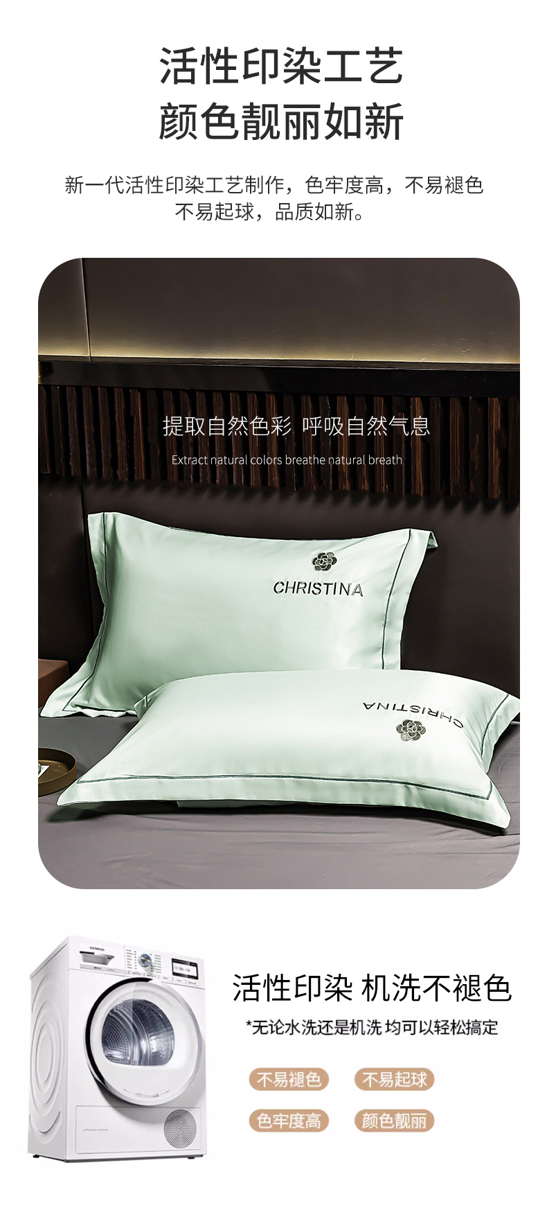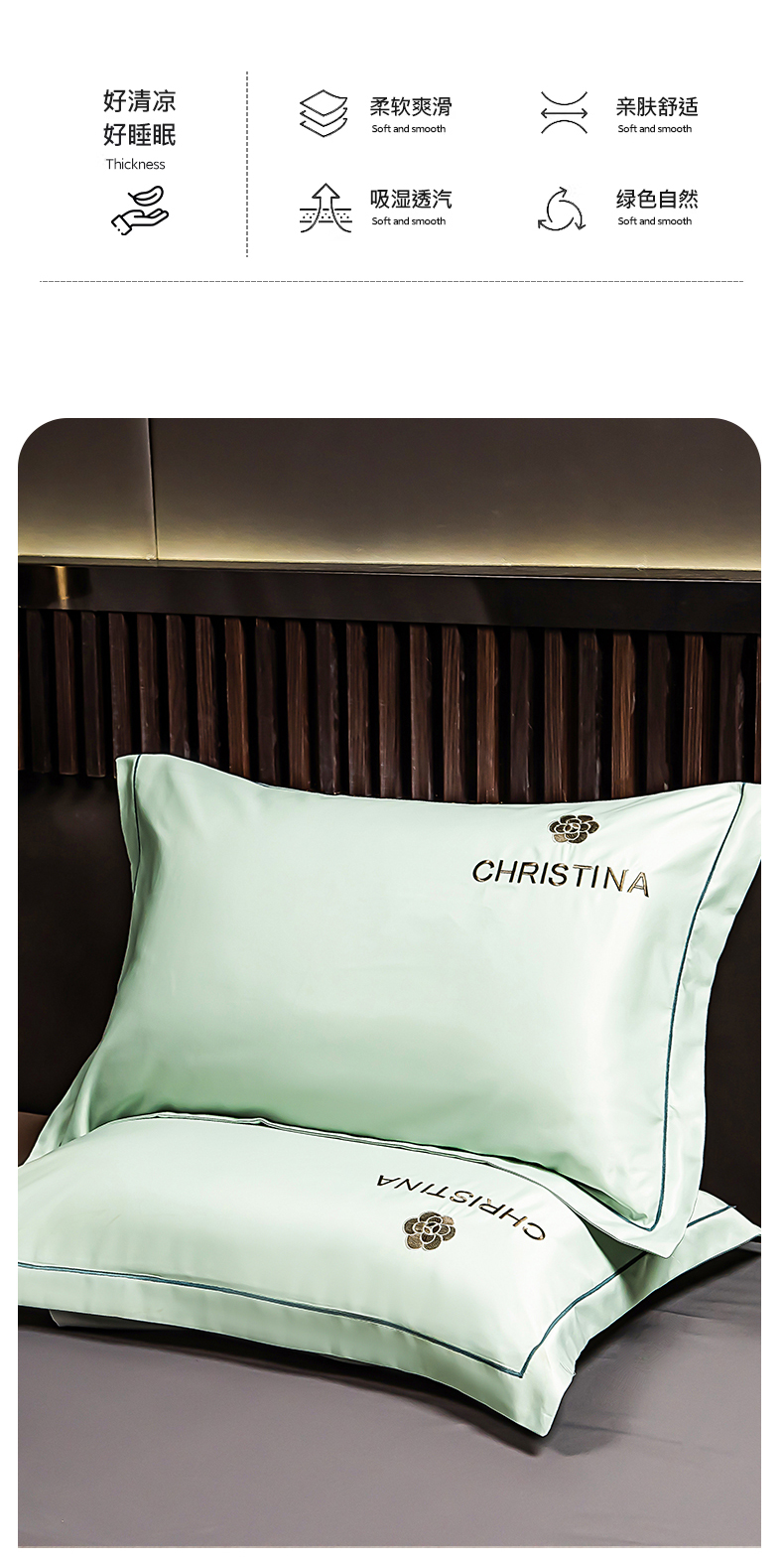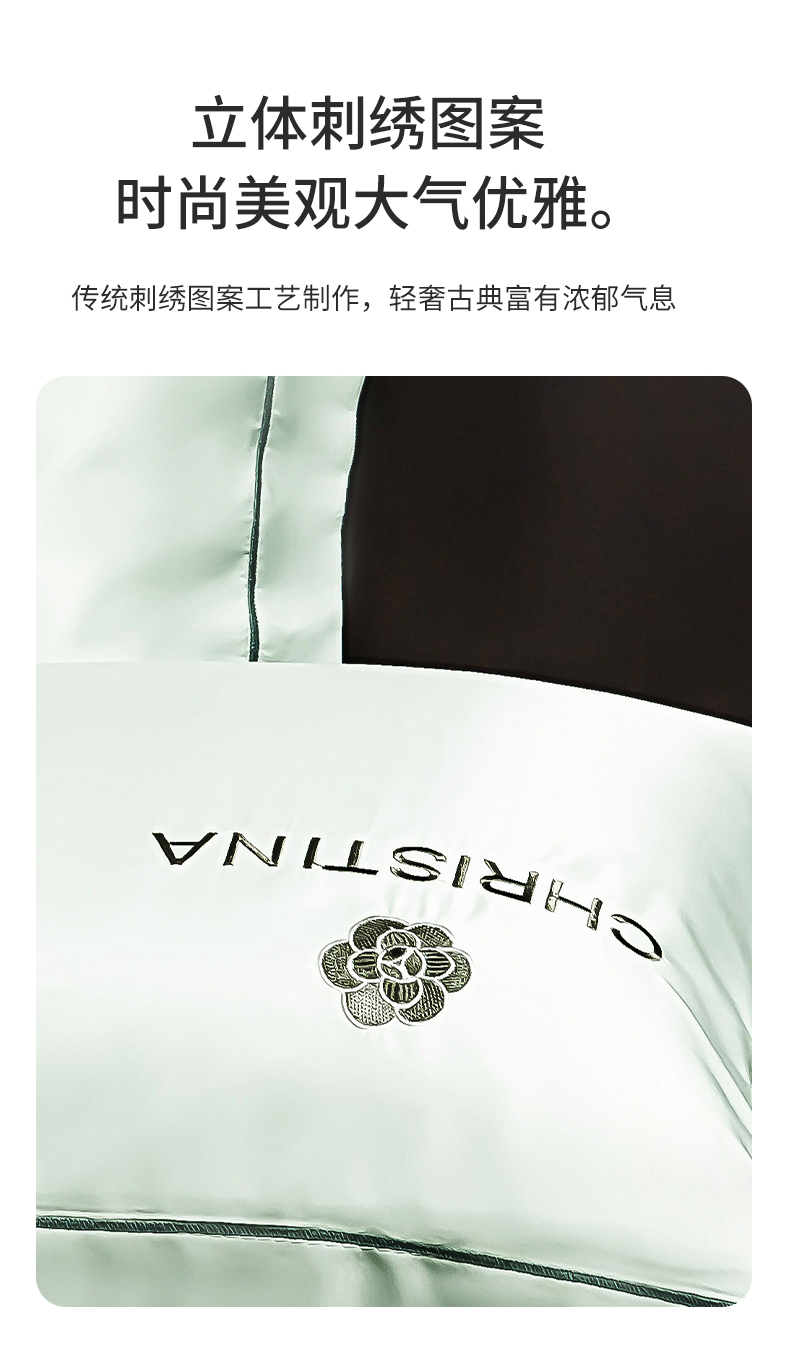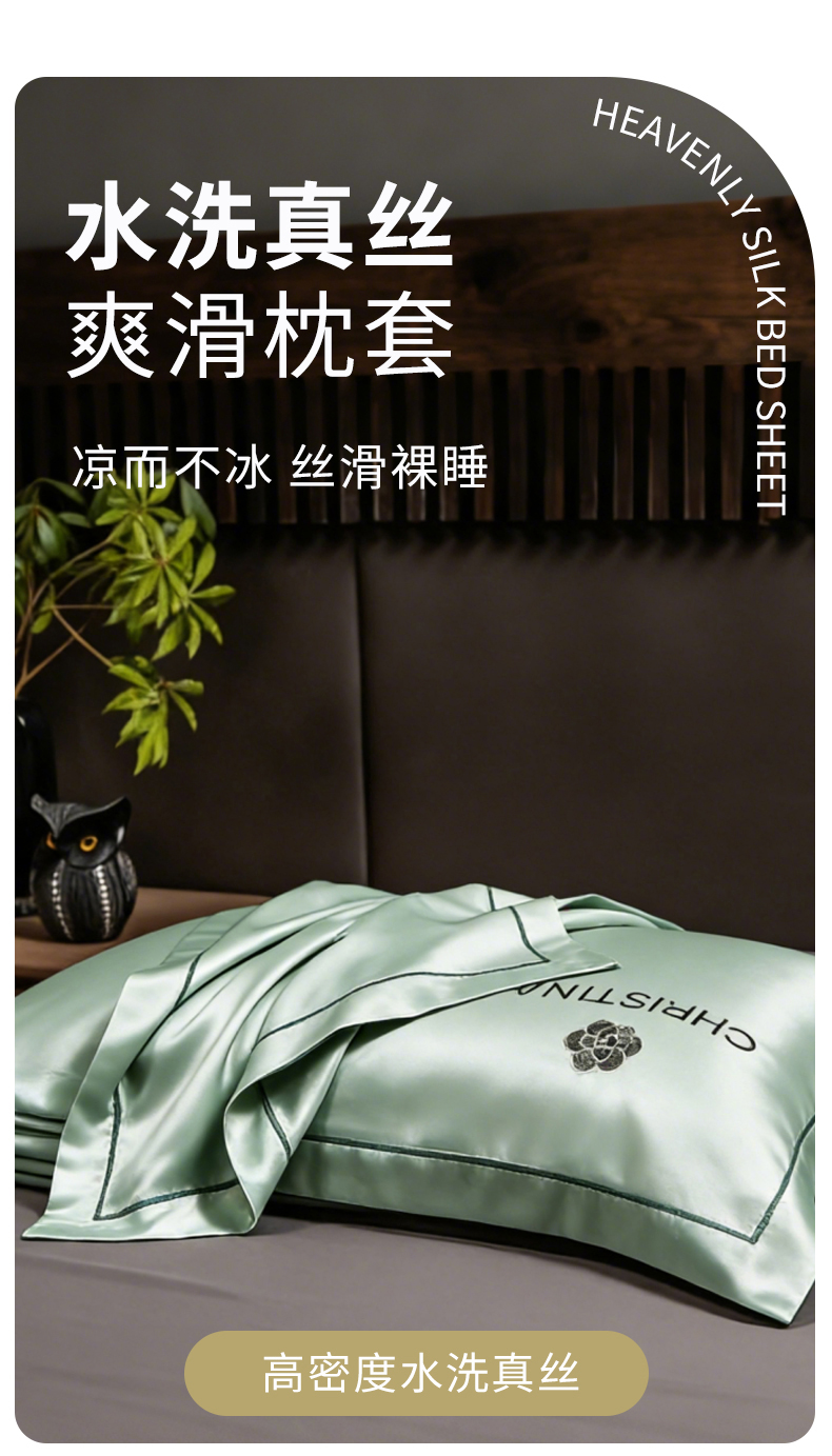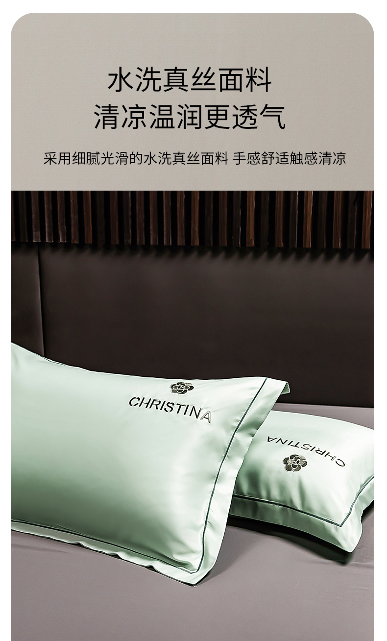 商品名称:丽美人家纺 2026新款凉感水洗真丝枕套-山茶花系列 山茶花-白茶绿