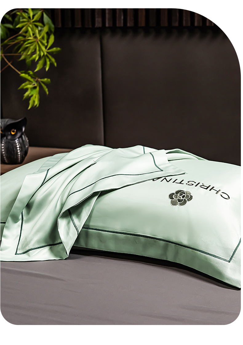 丽美人家纺 2026新款凉感水洗真丝枕套-山茶花系列 山茶花-白茶绿