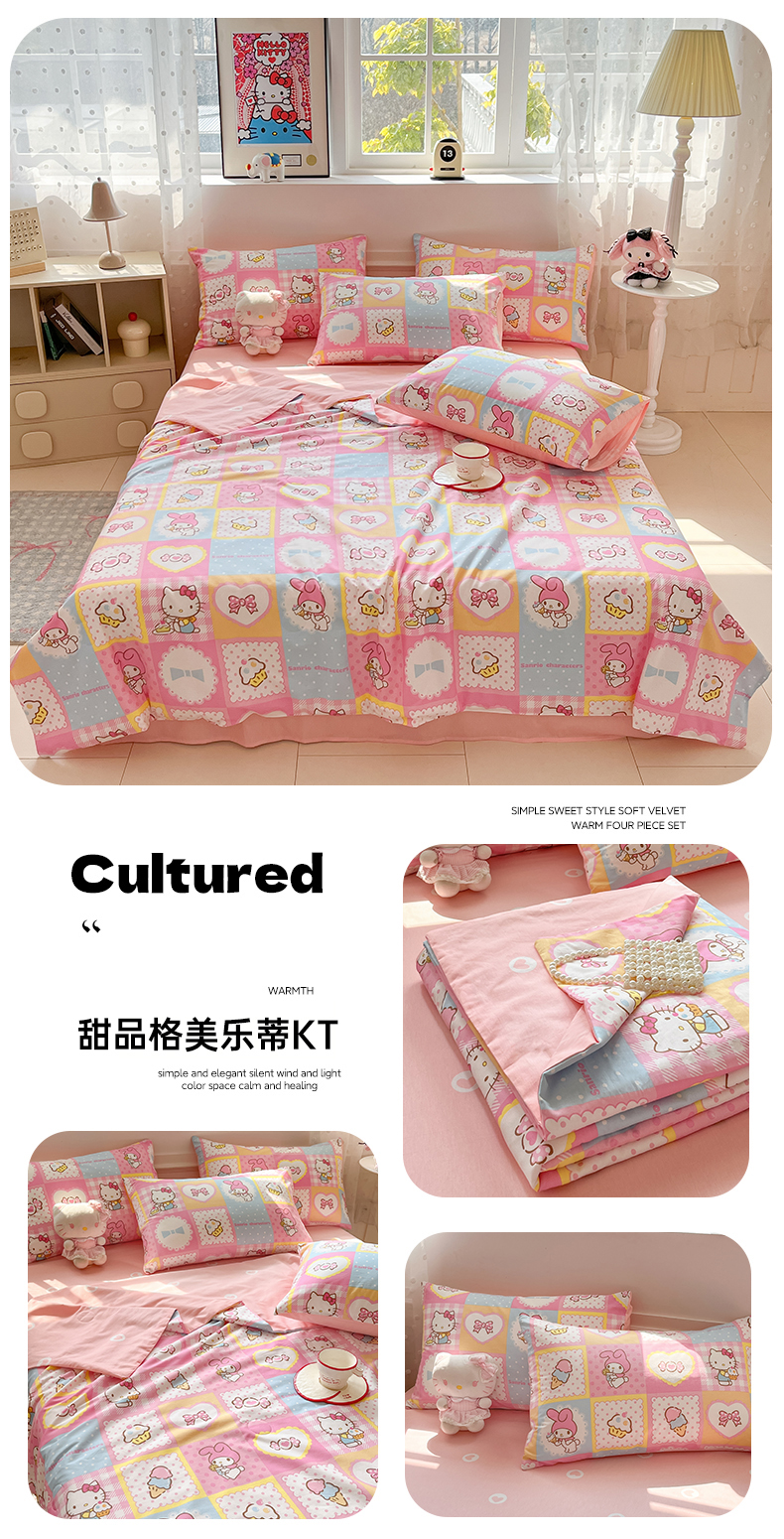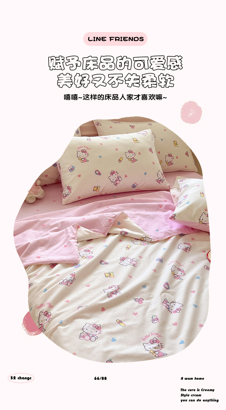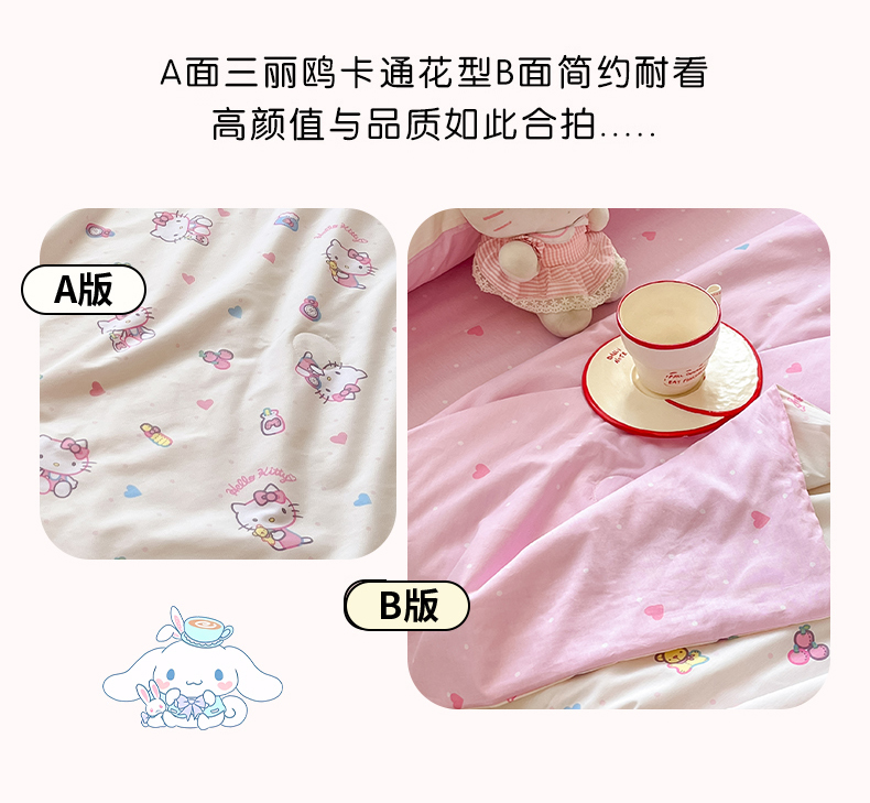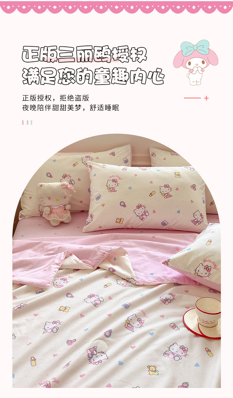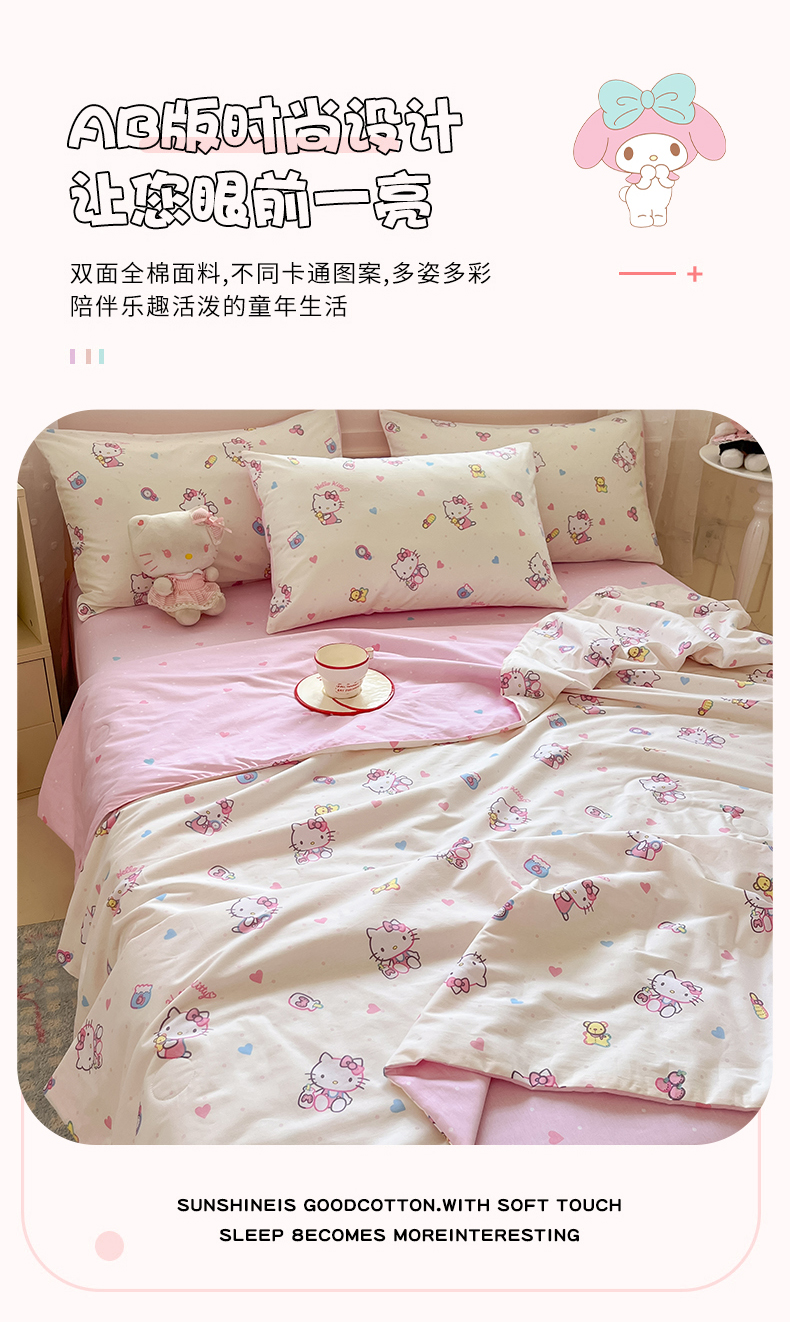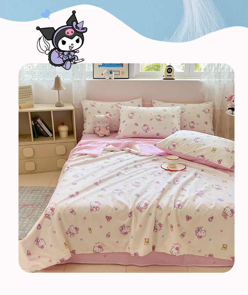 当前位置: 91家纺网 > 商品网购 > 床品套件 > 四件套 > 夏被四件套 > 博雅 2026春夏新款三丽鸥全棉夏被夏凉被空调被四件套 爱心点点kt