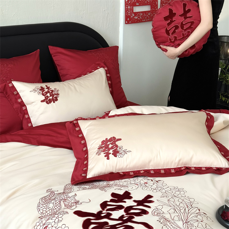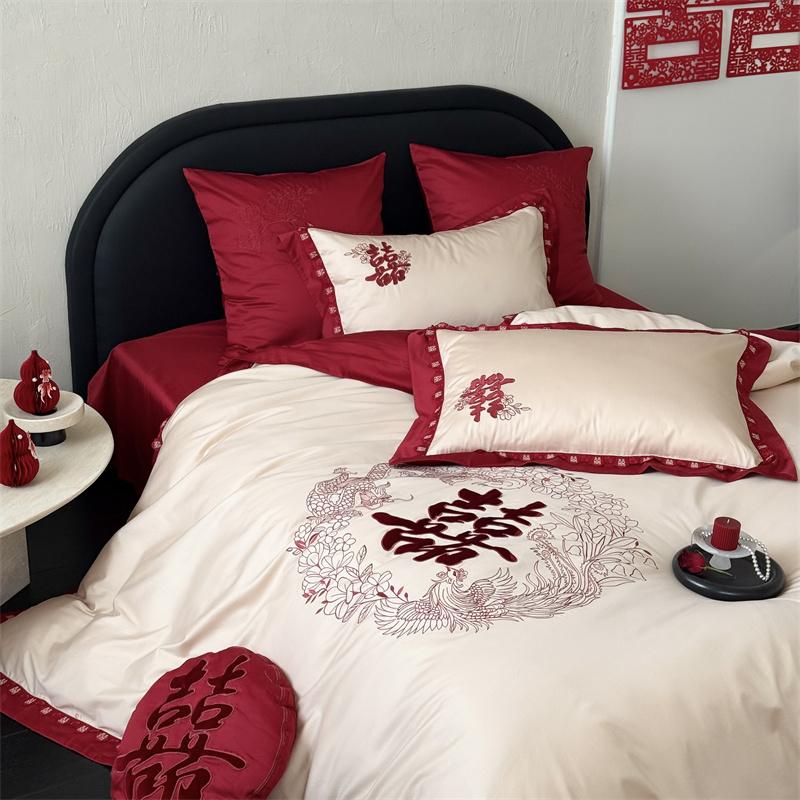 (总)江涞 2026年新款100长绒棉高精密刺绣四件套—纳喜,纳喜