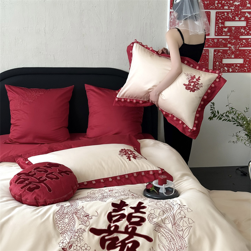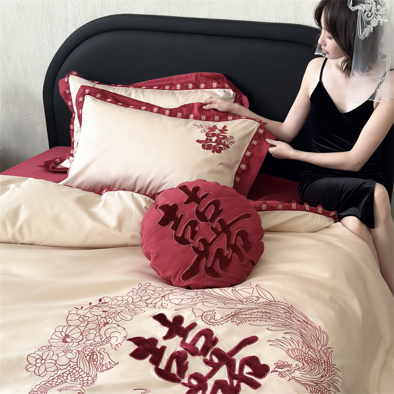 (总)江涞 2026新款100支长绒棉进口高端刺绣可摘卸流苏四件套-迎喜(淘宝券后不低于 418/438),迎喜