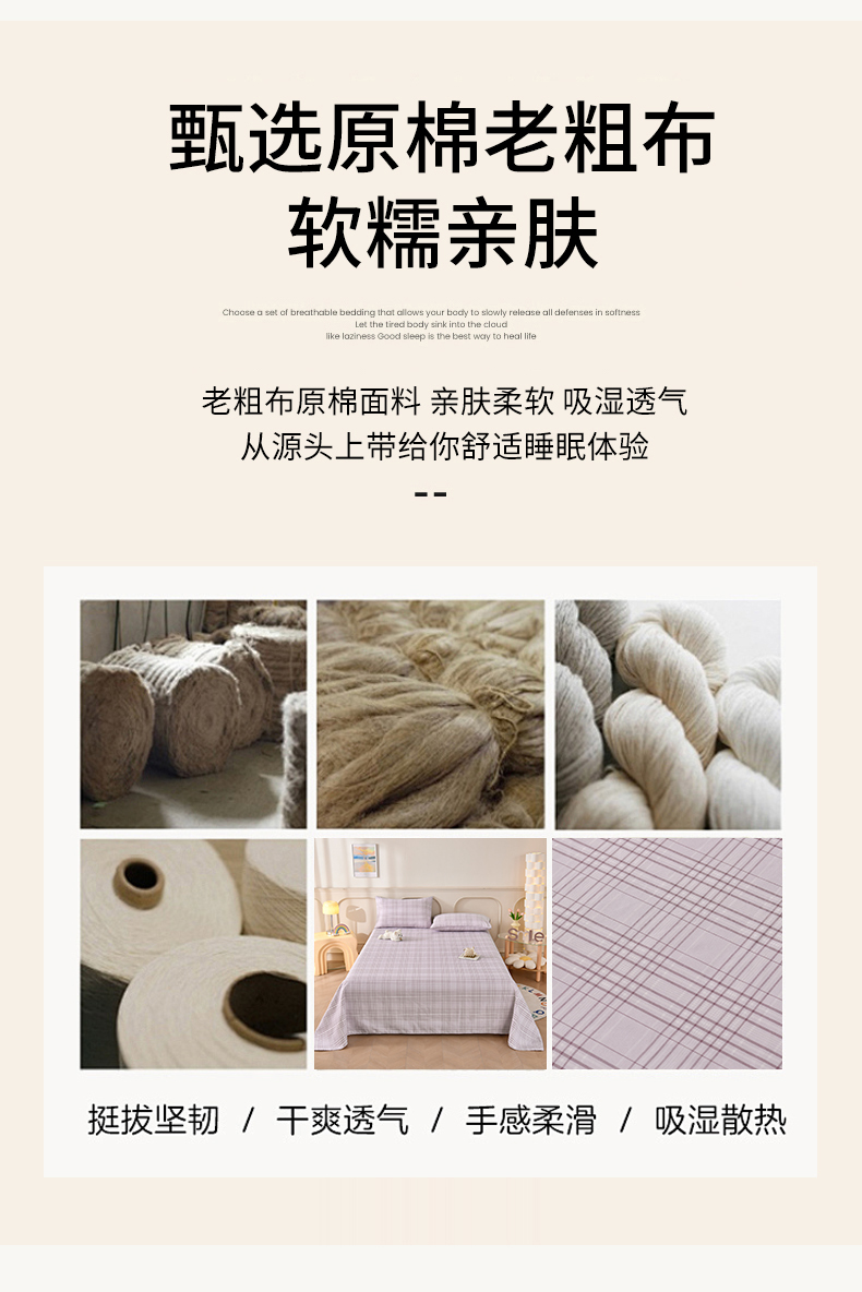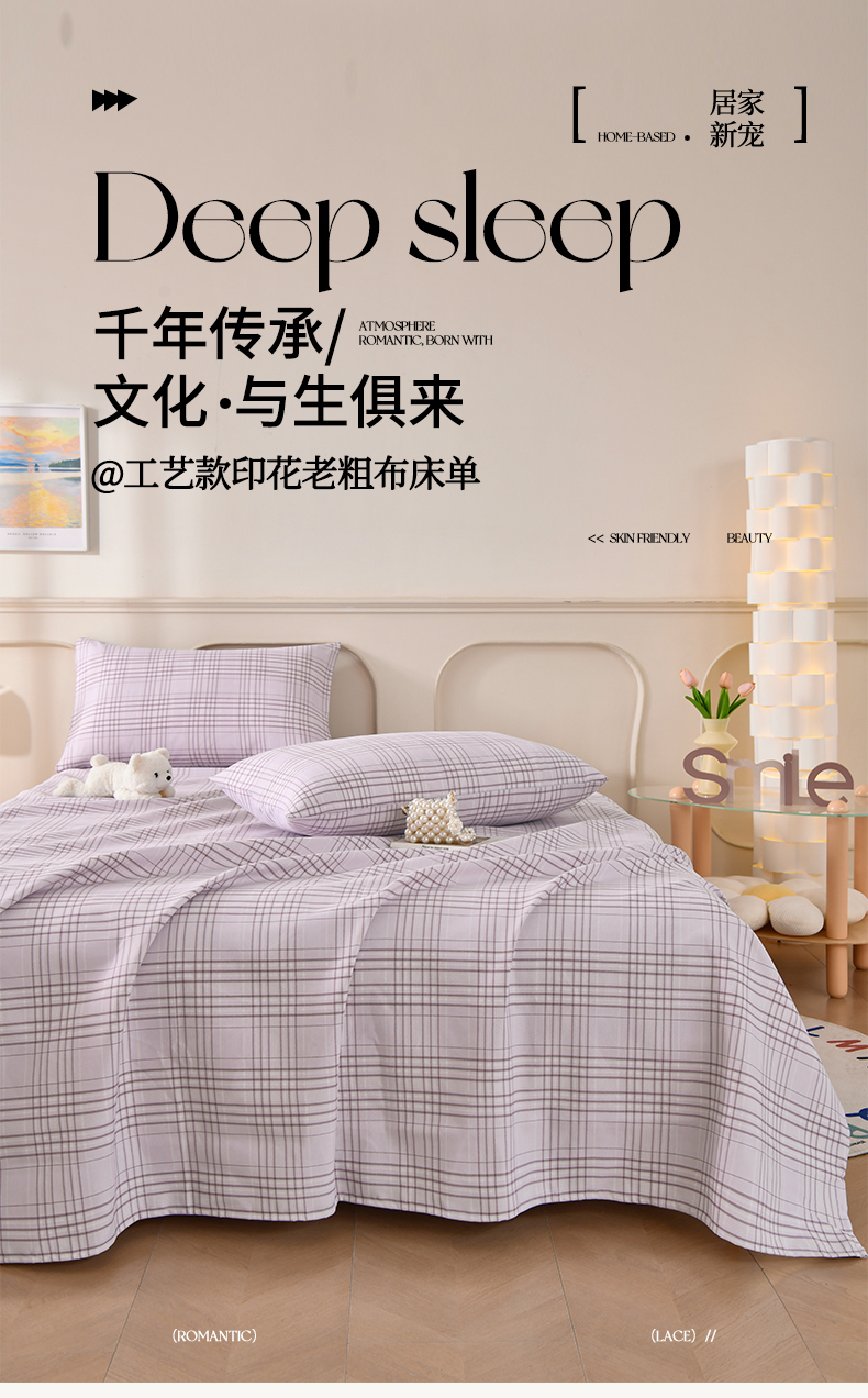 • 91家纺网 家纺一手货源 找家纺 悠米悠家 2026新款工艺款印花老粗布床单单品床单床单单件凉席席子 紫雾格序