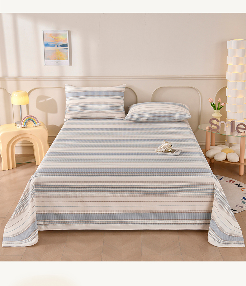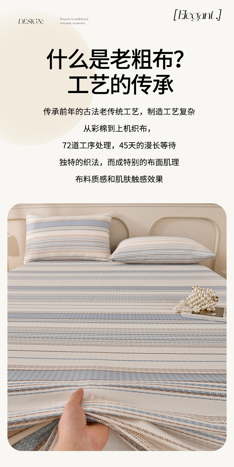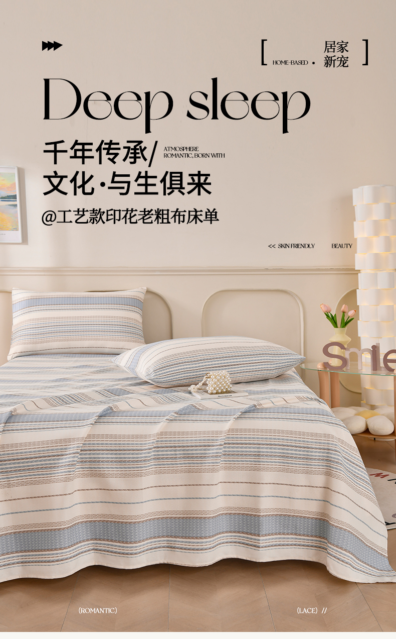 • 91家纺网 家纺一手货源 找家纺 悠米悠家 2026新款工艺款印花老粗布床单单品床单床单单件凉席席子 海盐棕条纹