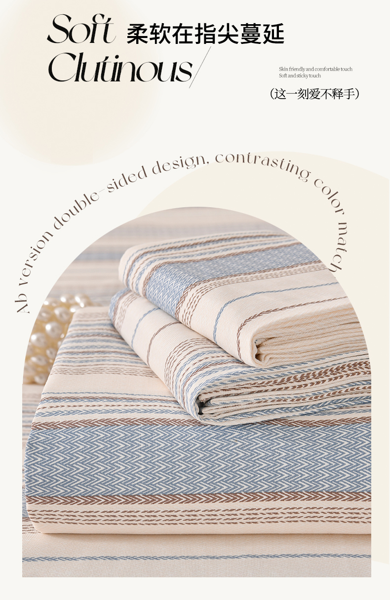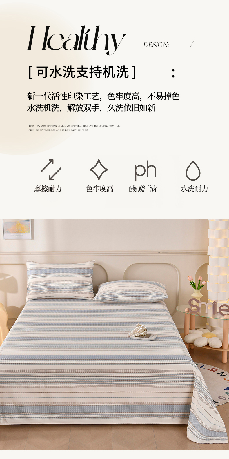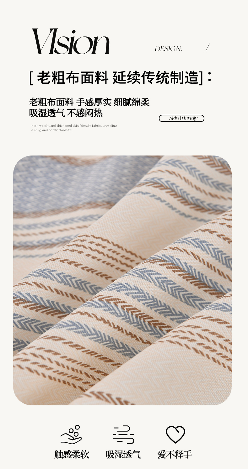 • 91家纺网 家纺一手货源 找家纺 悠米悠家 2026新款工艺款印花老粗布床单单品床单床单单件凉席席子 海盐棕条纹