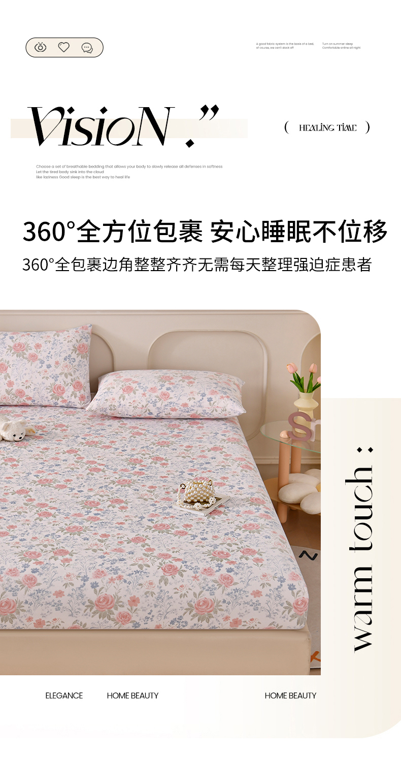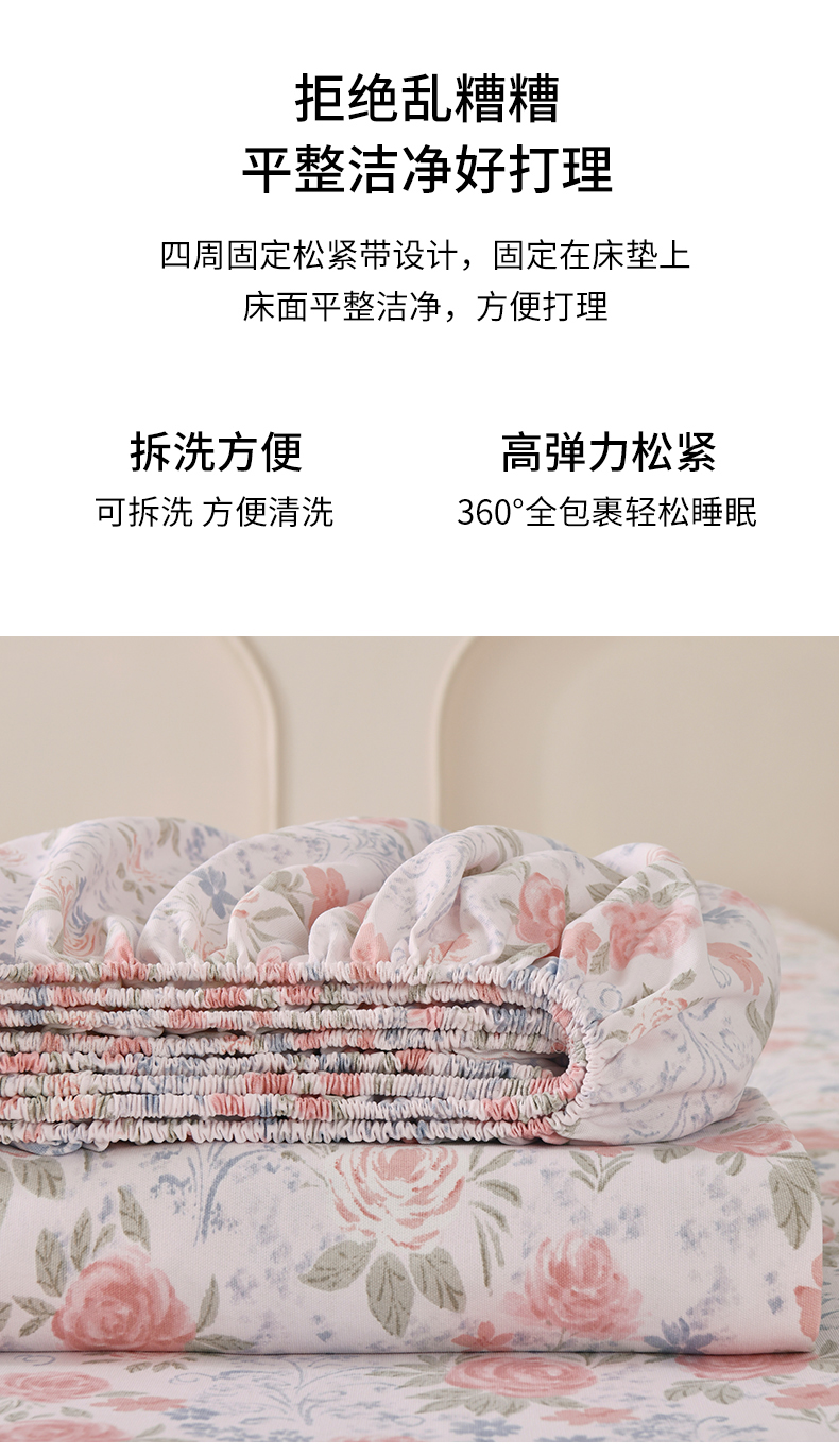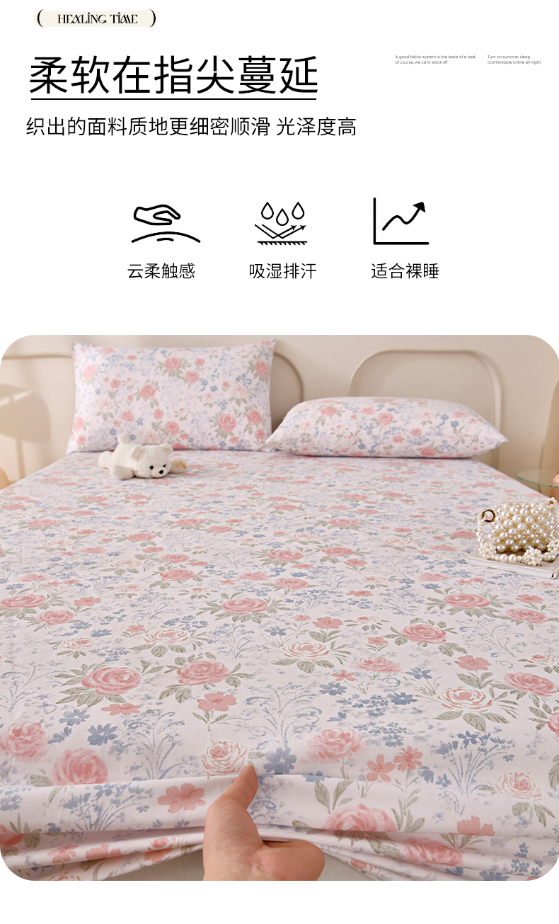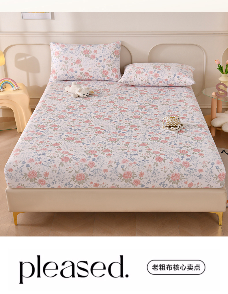 • 91家纺网 家纺一手货源 找家纺 悠米悠家 2026新款工艺款印花老粗布床笠单品床笠床笠单件凉席席子 烟粉花境织