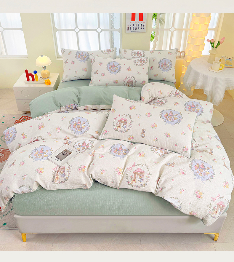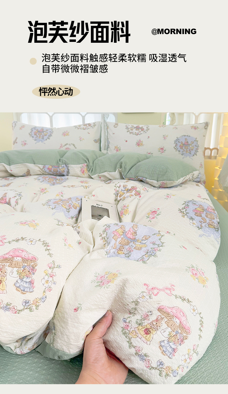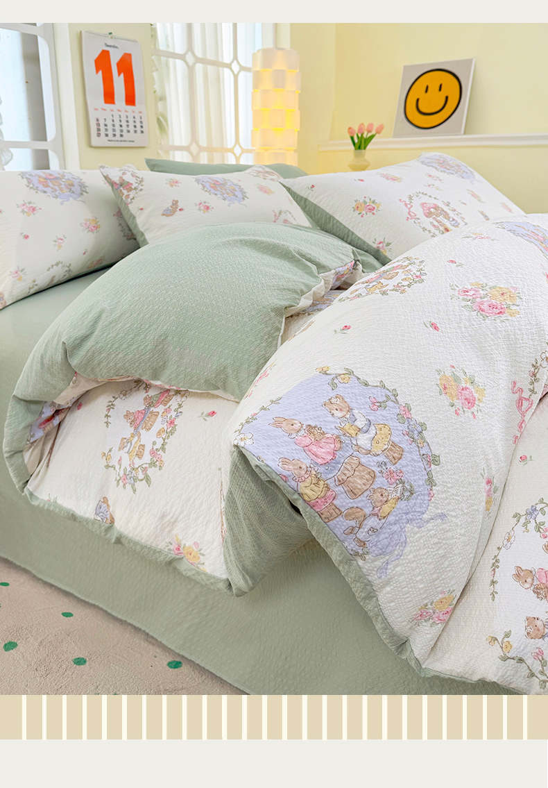 当前位置: 91家纺网 > 商品网购 > 床品套件 > 四件套 > 其它四件套 > 悠米悠家 2026春夏新款高克重A类泡芙纱泡泡皱皱纱四件套 森林读书会-床单款