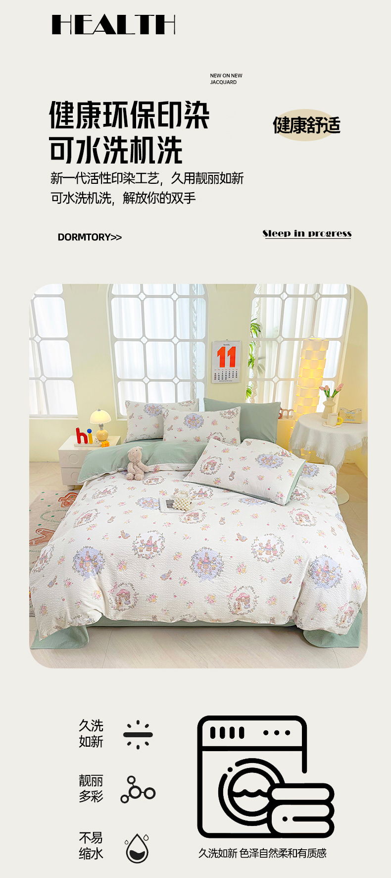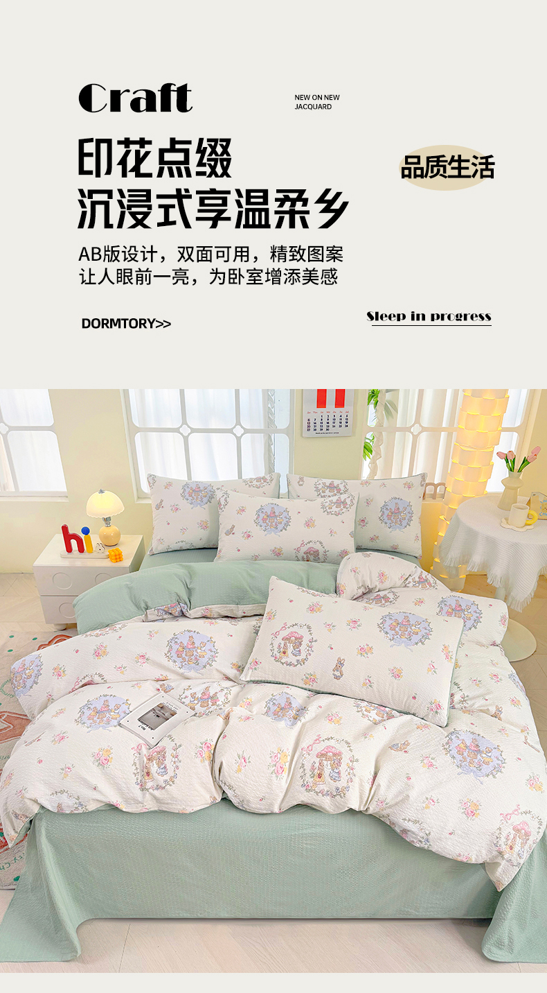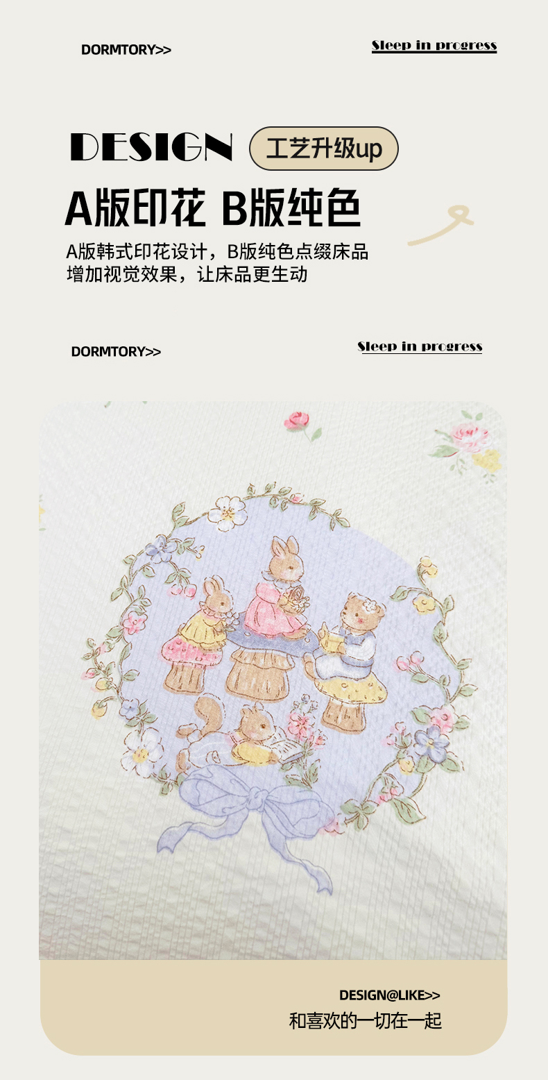 当前位置: 91家纺网 > 商品网购 > 床品套件 > 四件套 > 其它四件套 > 悠米悠家 2026春夏新款高克重A类泡芙纱泡泡皱皱纱四件套 森林读书会-床单款