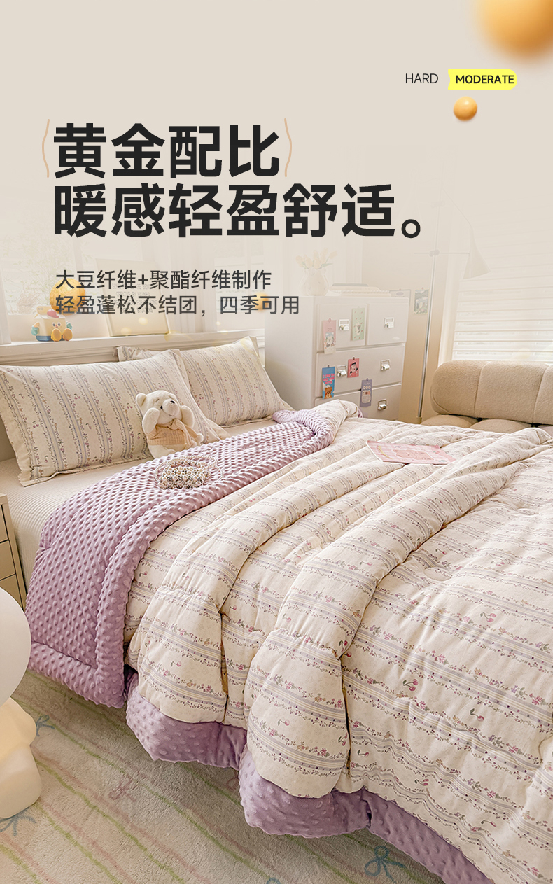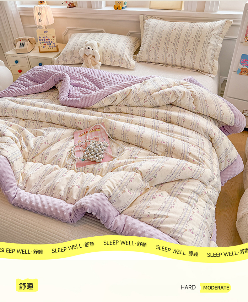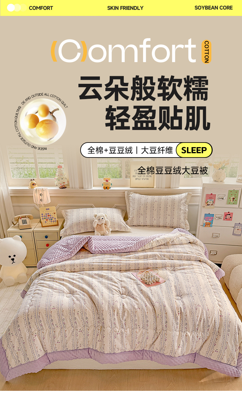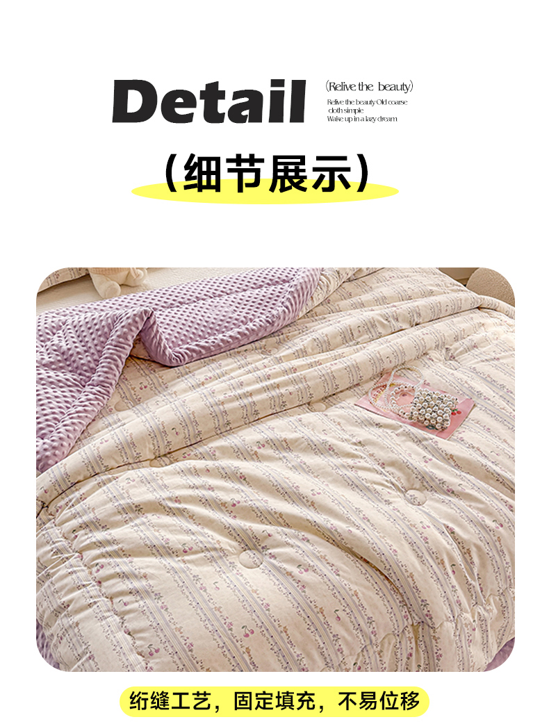 • 91家纺网 家纺一手货源 找家纺 梦依依 2026新款A类全棉豆豆绒大豆被冬被春秋被豆豆被子被芯 花季时光