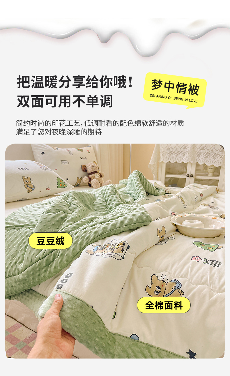 (总)梦依依 2026新款A类全棉豆豆绒大豆被冬被春秋被豆豆被子被芯,安藤丽娜(咖),棒棒糖女孩,草帽兔,草莓狗,草莓园,潮汐月影,春风里-紫,春日礼盒,多彩笑脸,狗狗家族,蝴蝶结灰,花季时光,花森密语(粉),恐龙星球,萝莉兔,沐光(米),轻纱漫舞,秋日玫瑰,瑞莎-蓝,守护爱心,听风-灰,童年游戏(米),夏日恋格-兰,小黑点点-米,熊猫卡皮,熊猫森林,熊仔,萱花,樱桃猫,月光集,云深白茶,樱桃树,费尔岛小熊,可爱星人