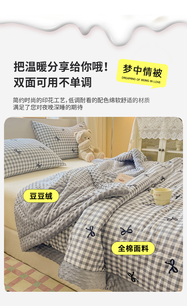(总)梦依依 2026新款A类全棉豆豆绒大豆被冬被春秋被豆豆被子被芯,安藤丽娜(咖),棒棒糖女孩,草帽兔,草莓狗,草莓园,潮汐月影,春风里-紫,春日礼盒,多彩笑脸,狗狗家族,蝴蝶结灰,花季时光,花森密语(粉),恐龙星球,萝莉兔,沐光(米),轻纱漫舞,秋日玫瑰,瑞莎-蓝,守护爱心,听风-灰,童年游戏(米),夏日恋格-兰,小黑点点-米,熊猫卡皮,熊猫森林,熊仔,萱花,樱桃猫,月光集,云深白茶,樱桃树,费尔岛小熊,可爱星人