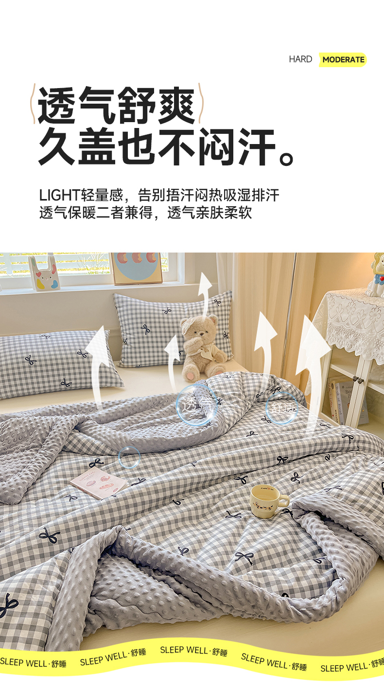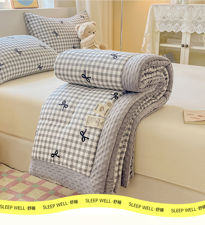 • 91家纺网 家纺一手货源 找家纺 梦依依 2026新款柔软舒适A类全棉豆豆被夏被春秋被子被芯 蝴蝶结灰