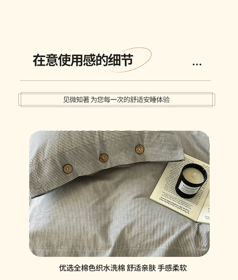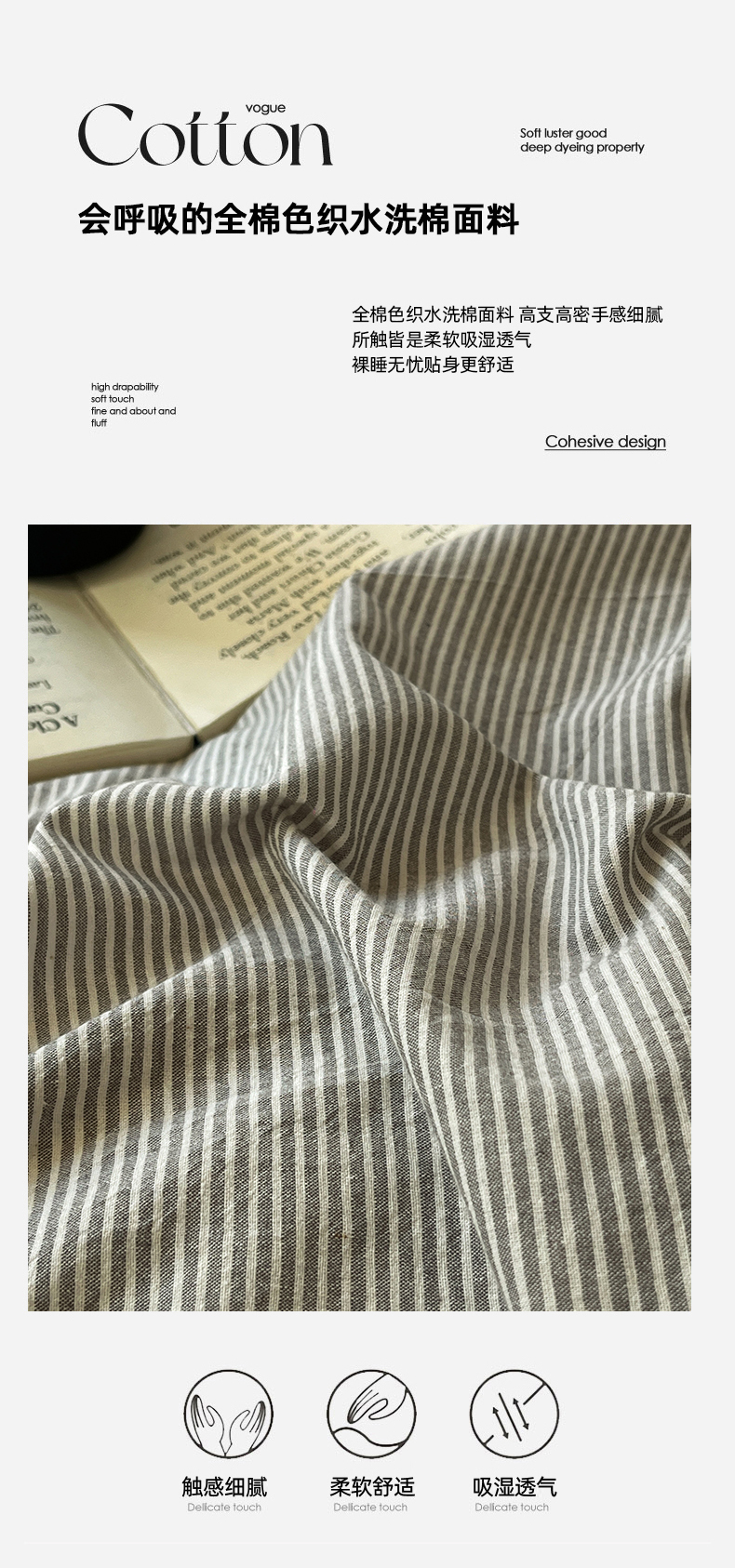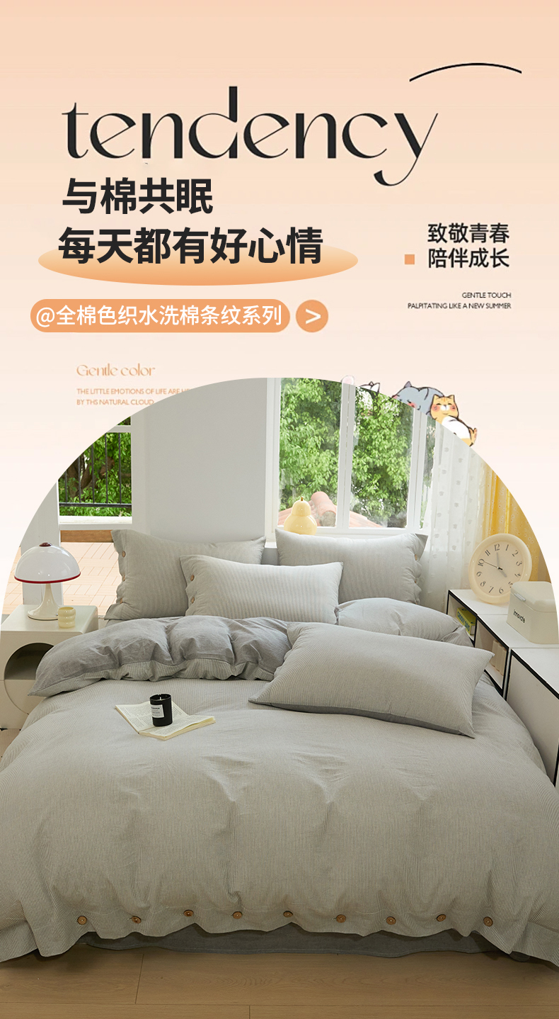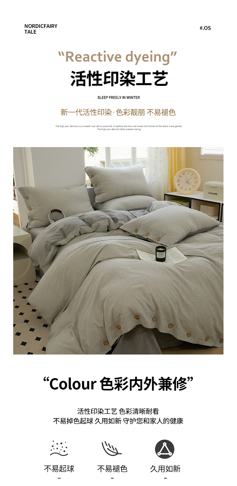 (总)梦依依 2025新款全棉色织水洗棉纽扣款四件套学生三件套全棉纯棉三件套,粉苏条,黑苏条,蓝苏条,绿苏条,米细条,黑细条,灰细条