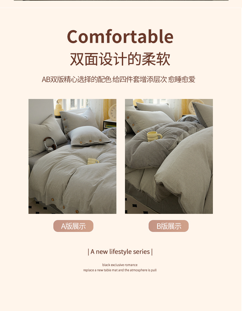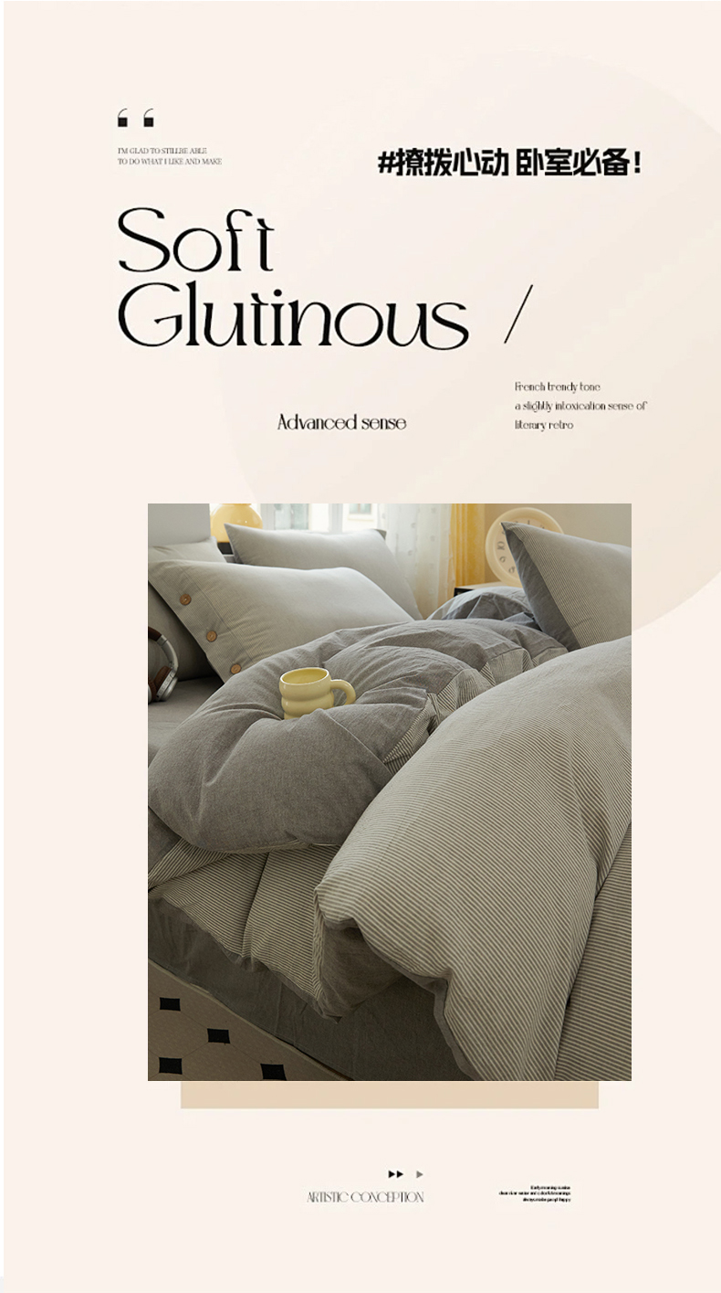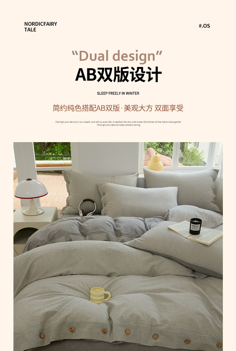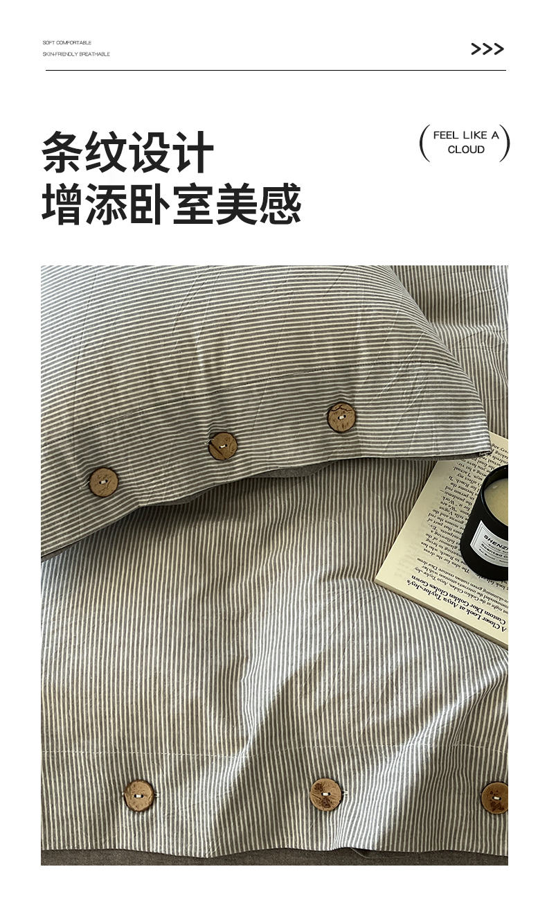 (总)梦依依 2025新款全棉色织水洗棉纽扣款四件套学生三件套全棉纯棉三件套,粉苏条,黑苏条,蓝苏条,绿苏条,米细条,黑细条,灰细条