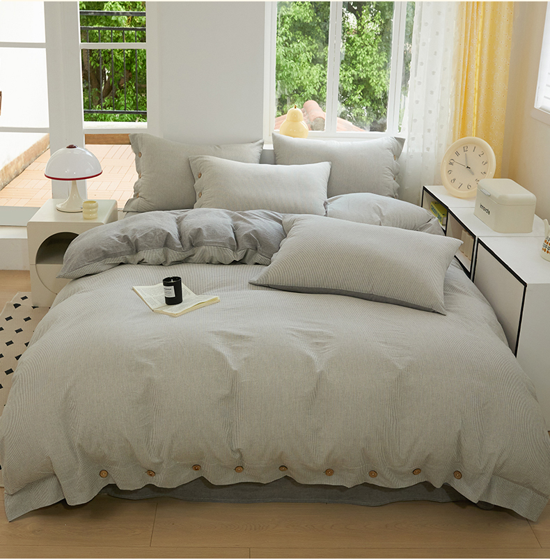 梦依依 2026新款A类全棉色织水洗棉纯棉格子钮扣款四件套学生宿舍三件套 灰细条