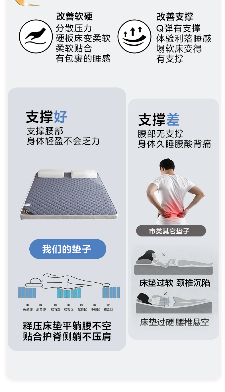 (总)时奥家纺 2023新款可拆慢回弹记忆棉竹炭海绵床垫,零压竹炭可拆卸
