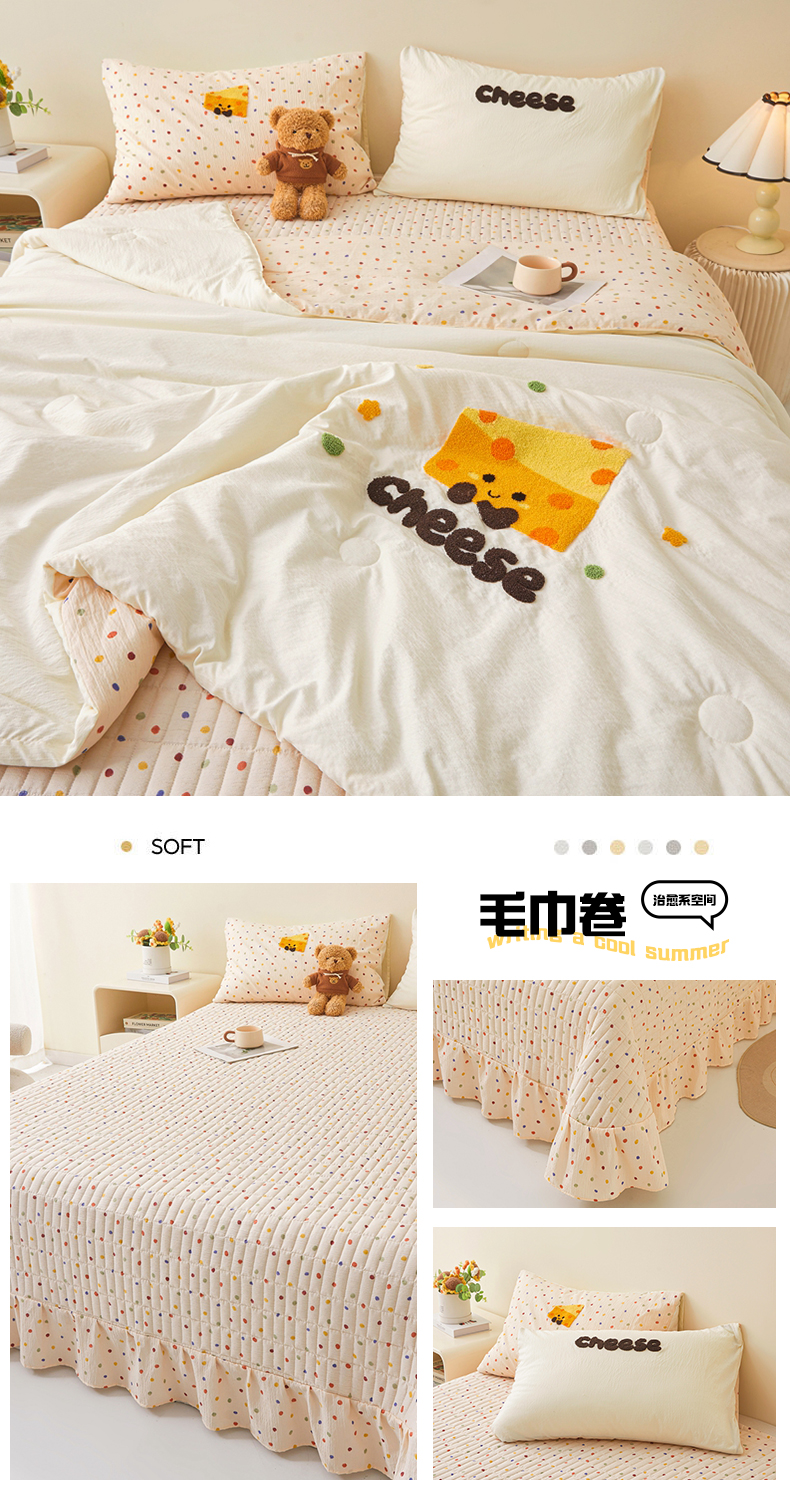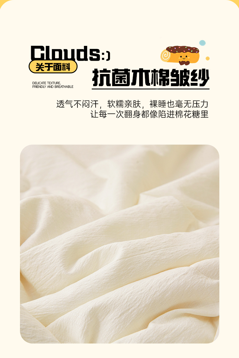 当前位置: 91家纺网 > 商品网购 > 床品套件 > 四件套 > 其它四件套 > 麦空家居 2026新款木棉皱纱春夏被床盖四件套jelly cheese系列 组合图仅展示
