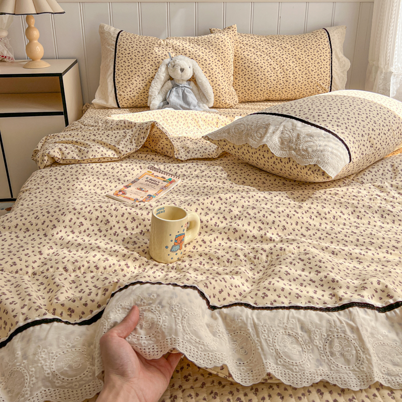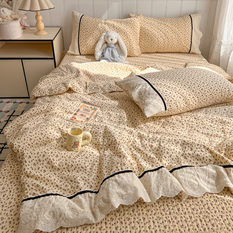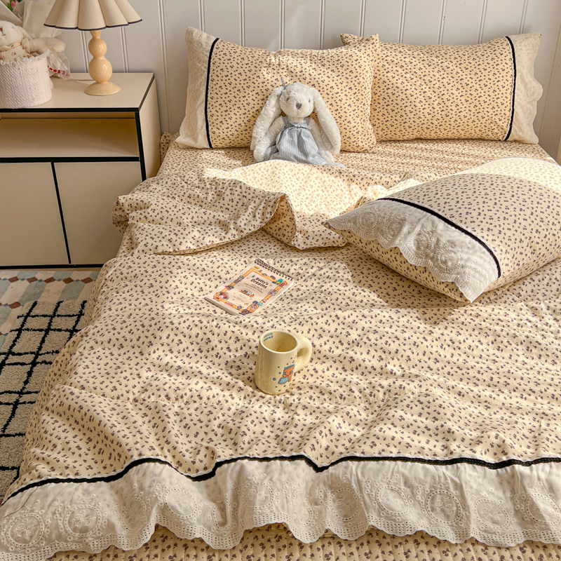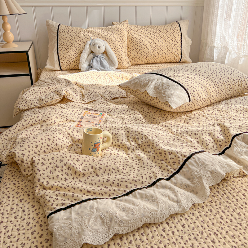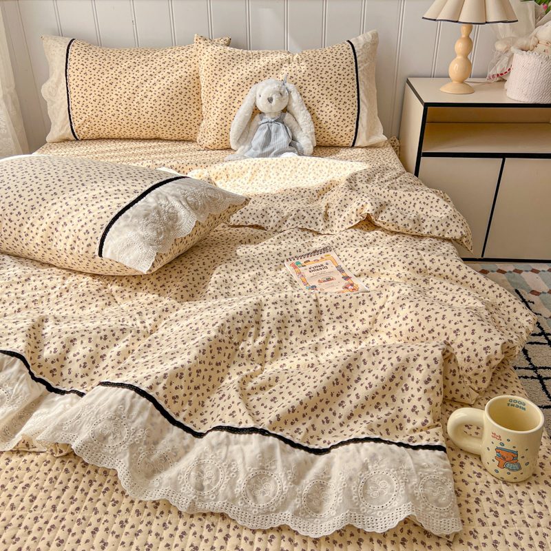 欧尚 2026新款花边云感棉夏被床盖四件套 晴川木也
