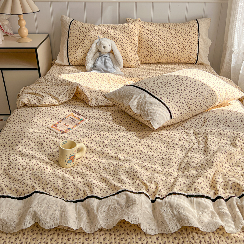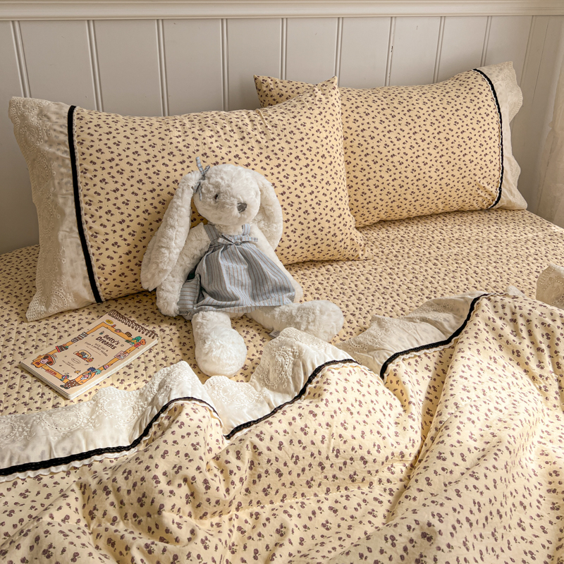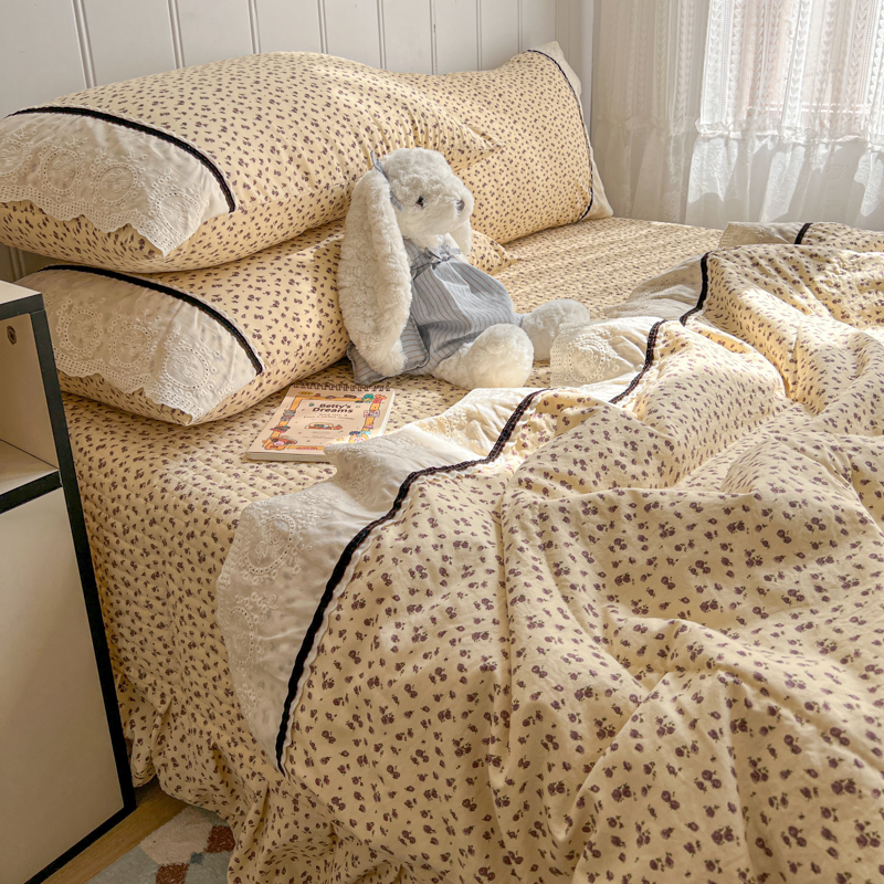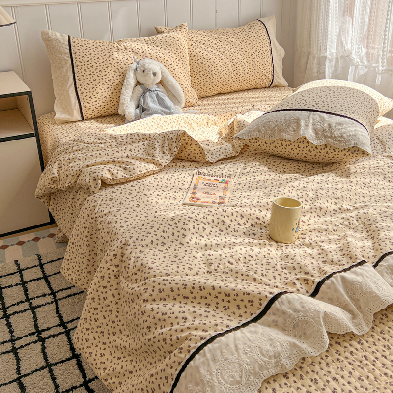 商品名称:欧尚 2026新款花边云感棉夏被床盖四件套 晴川木也
