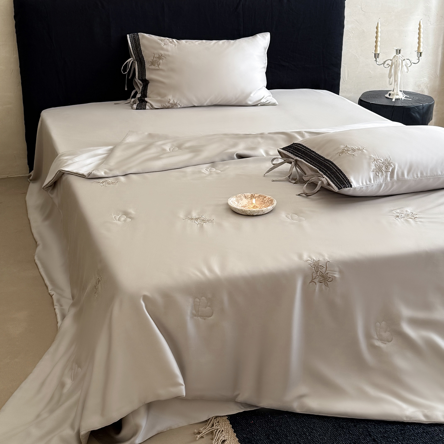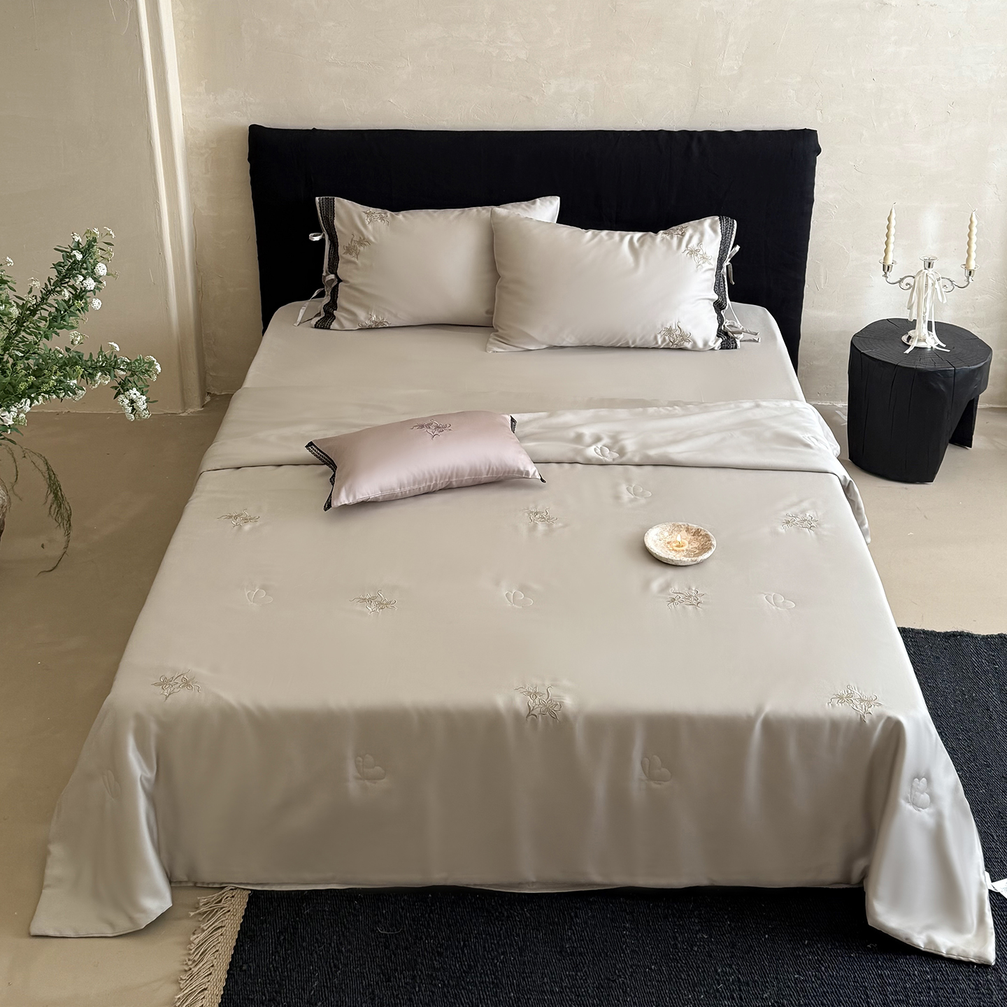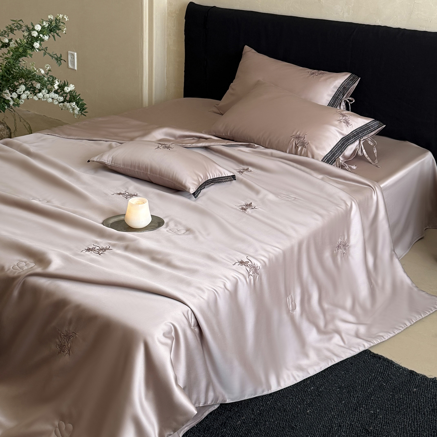 当前位置: 91家纺网 > 商品网购 > 被子 > 莱赛尔夏被 > 鹿班家居 2026新款60S兰精天丝刺绣夏被系列-花姿(标准会员-20元) 米灰色