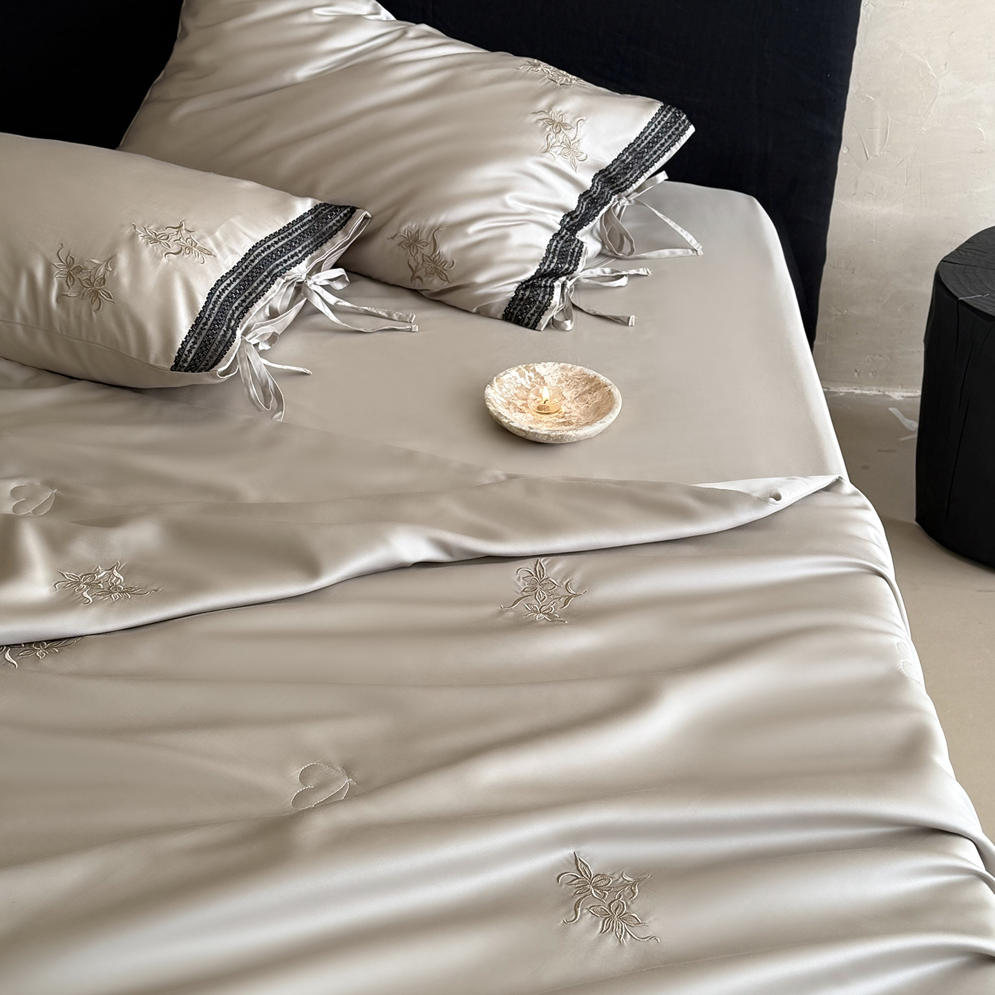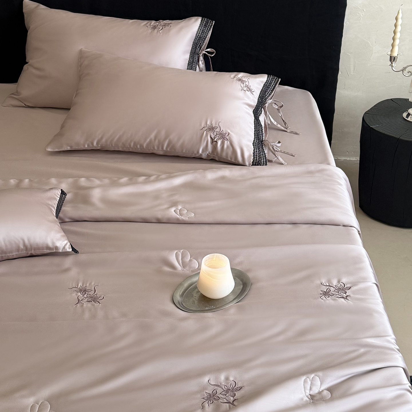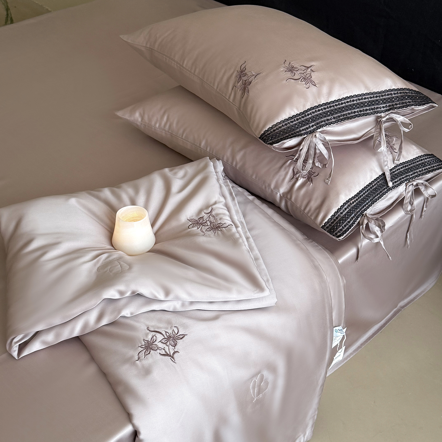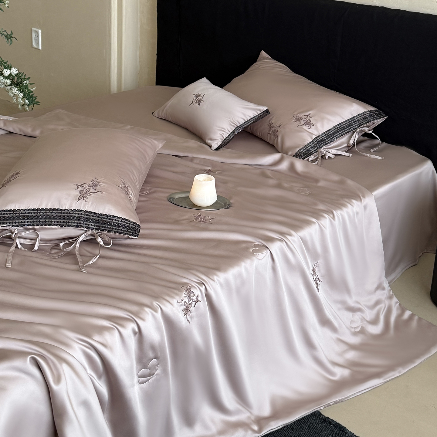 当前位置: 91家纺网 > 商品网购 > 被子 > 莱赛尔夏被 > 鹿班家居 2026新款60S兰精天丝刺绣夏被系列-花姿(标准会员-20元) 米灰色