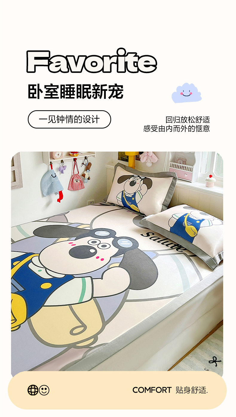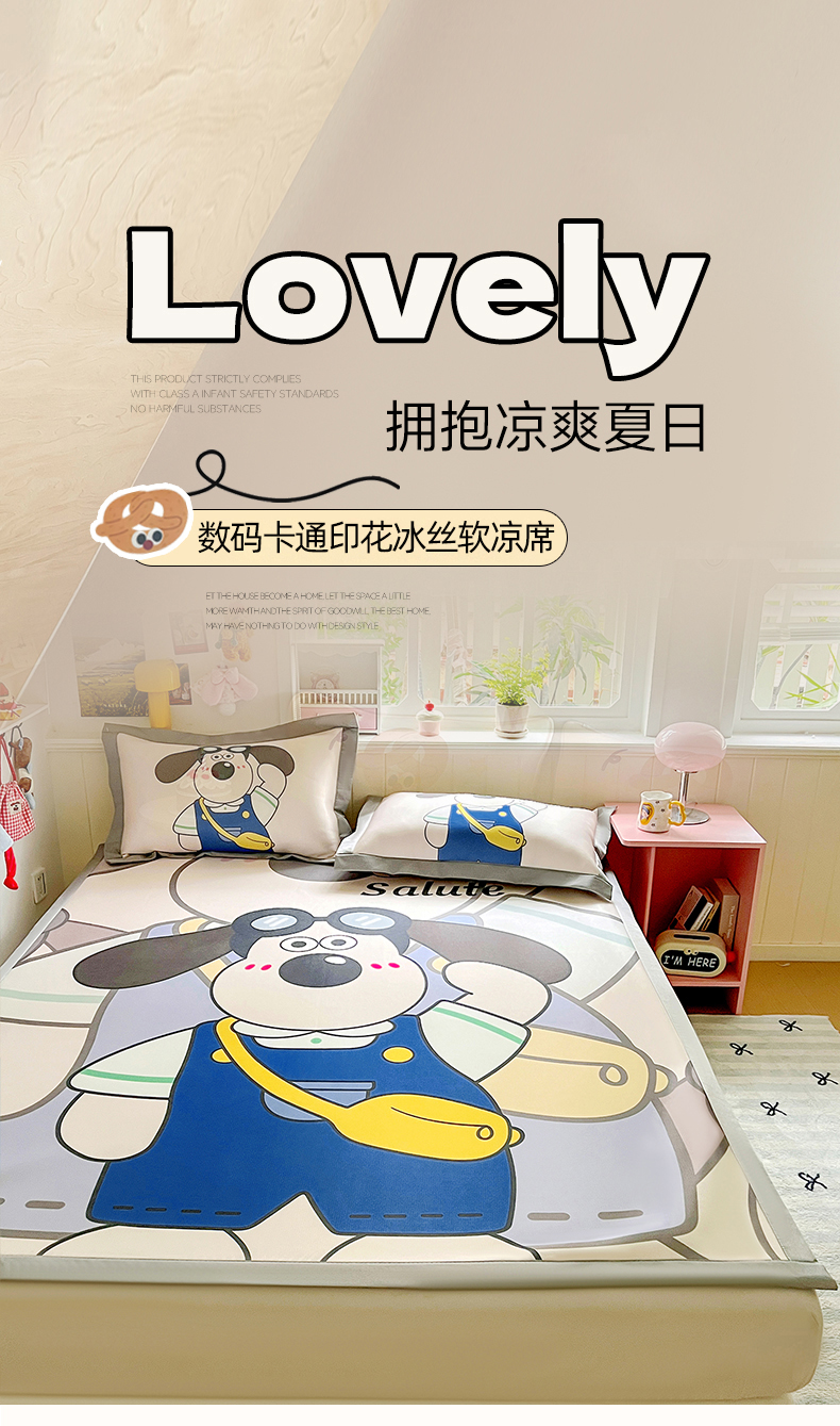 (总)KT猫直营店 2026新款数码卡通印花凉感冰丝软凉席席子,波点熊-席,登月叮当黄-席,登月叮当蓝-席,飞行汪-席,懒懒熊-席,晚安小星-席,小确幸-席,星星人派对-席,星芽芽-席,星仔面包铺-席,眼镜狗-席