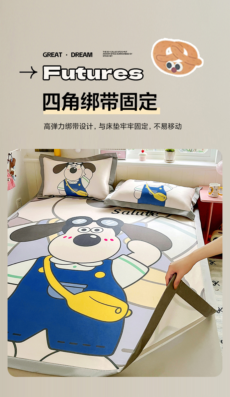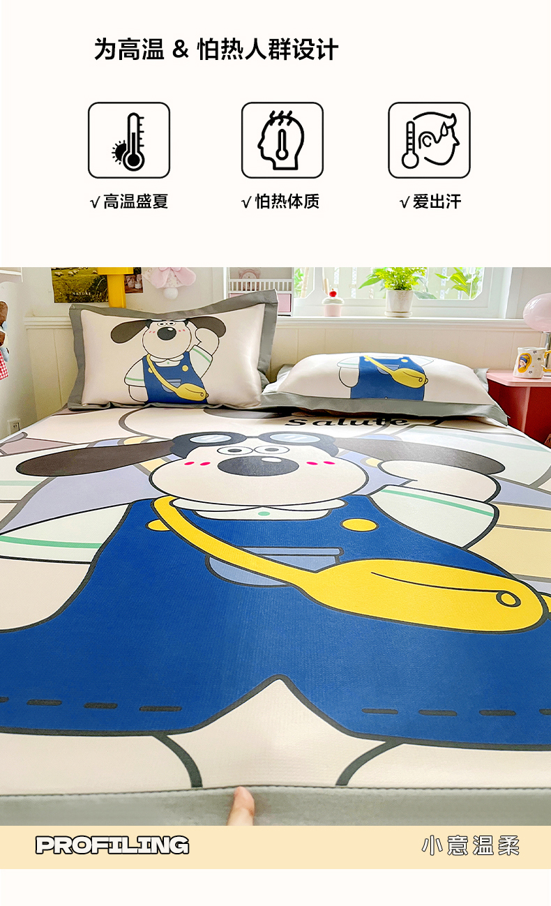 KT猫直营店 2026新款数码卡通印花凉感冰丝软凉席席子 飞行汪-席