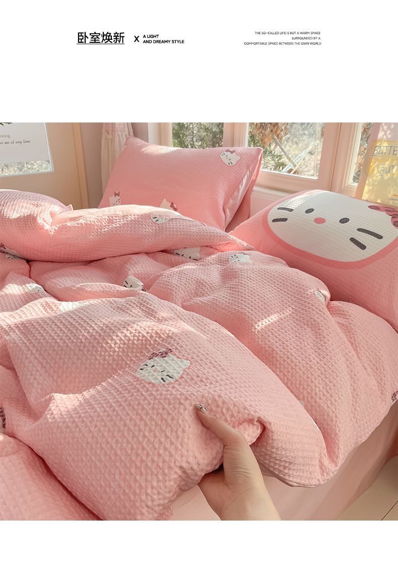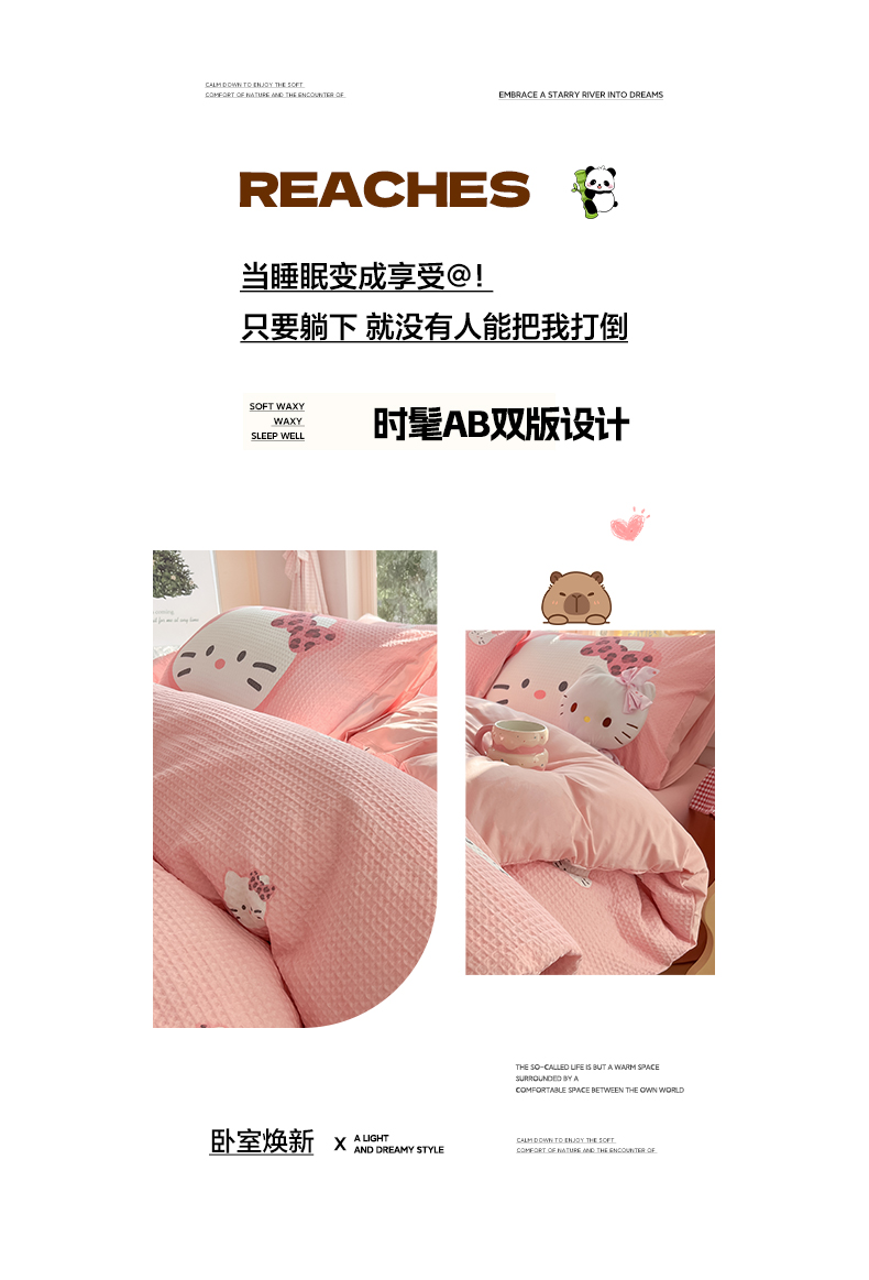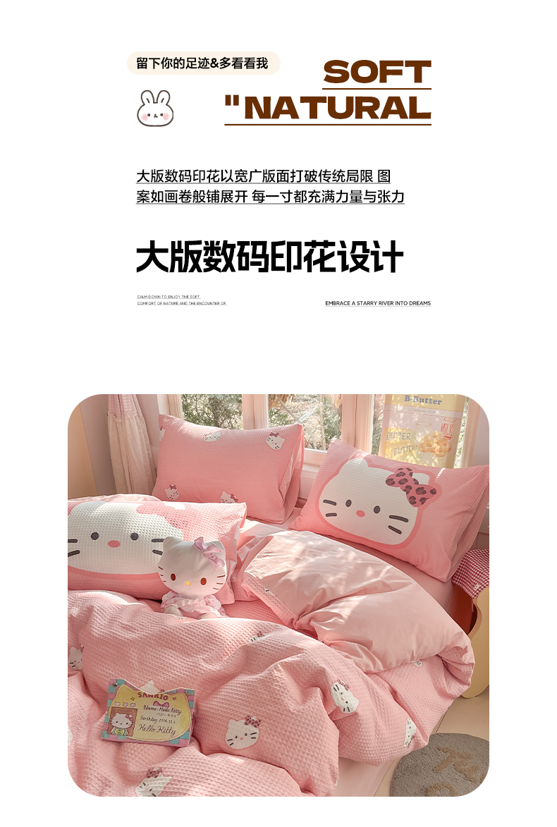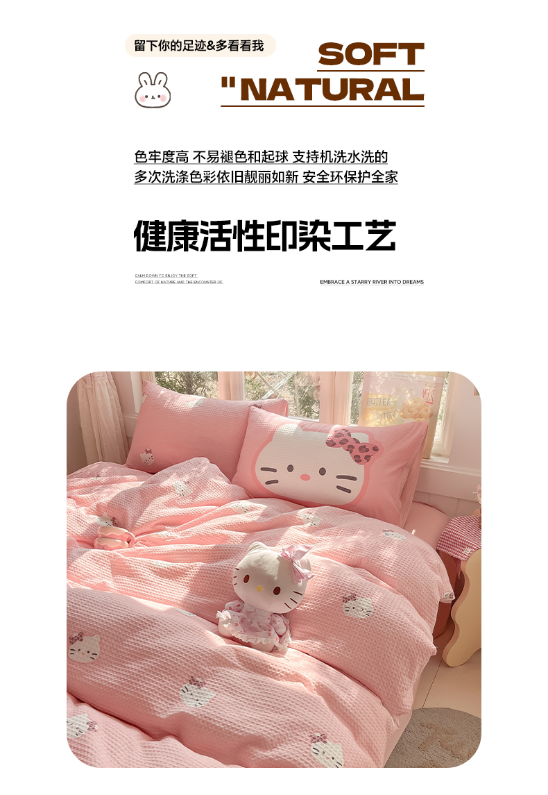 当前位置: 91家纺网 > 商品网购 > 床品套件 > 四件套 > 全棉普通四件套 > 如一 2026新款全棉纯棉华夫格大版数码印花四件套 粉蒂猫
