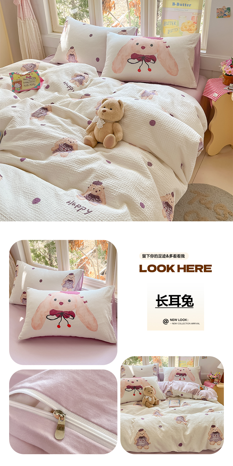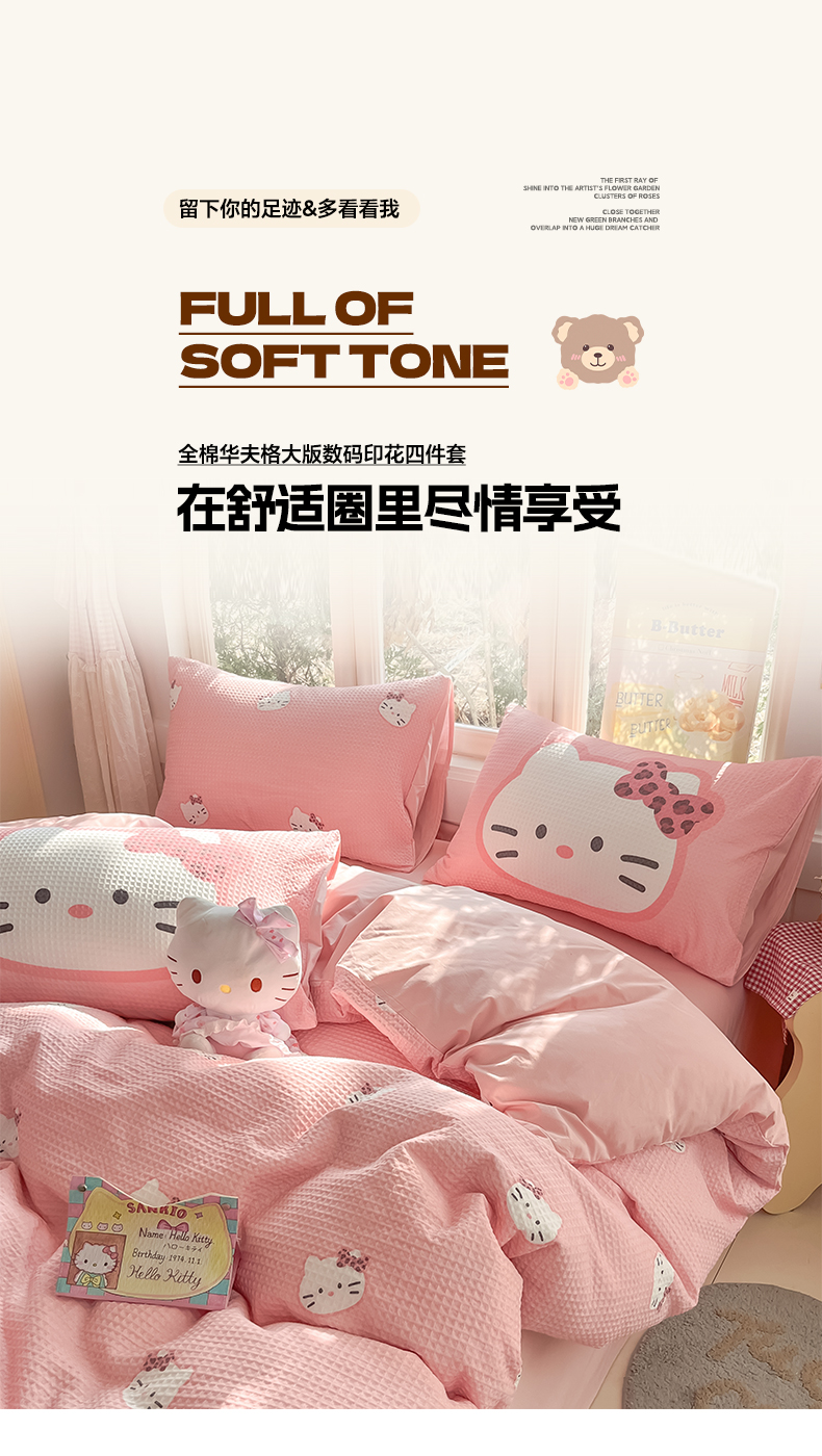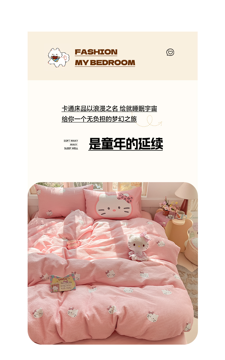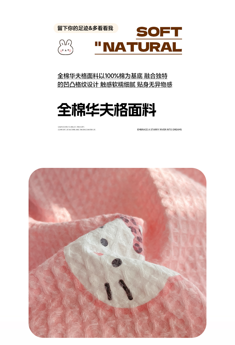 当前位置: 91家纺网 > 商品网购 > 床品套件 > 四件套 > 全棉普通四件套 > 如一 2026新款全棉纯棉华夫格大版数码印花四件套 粉蒂猫