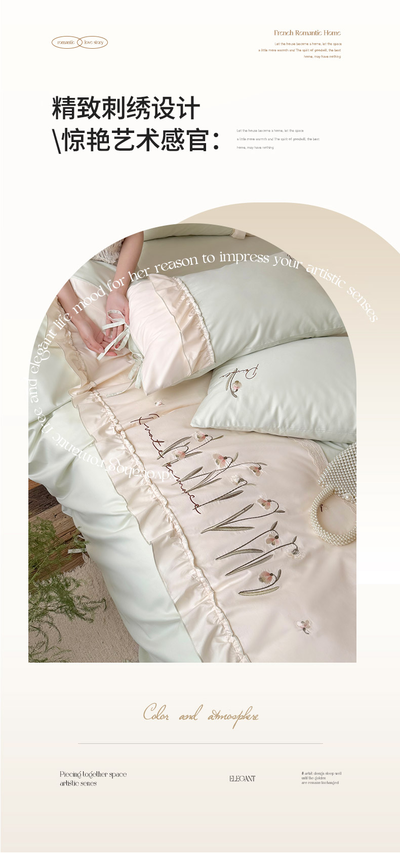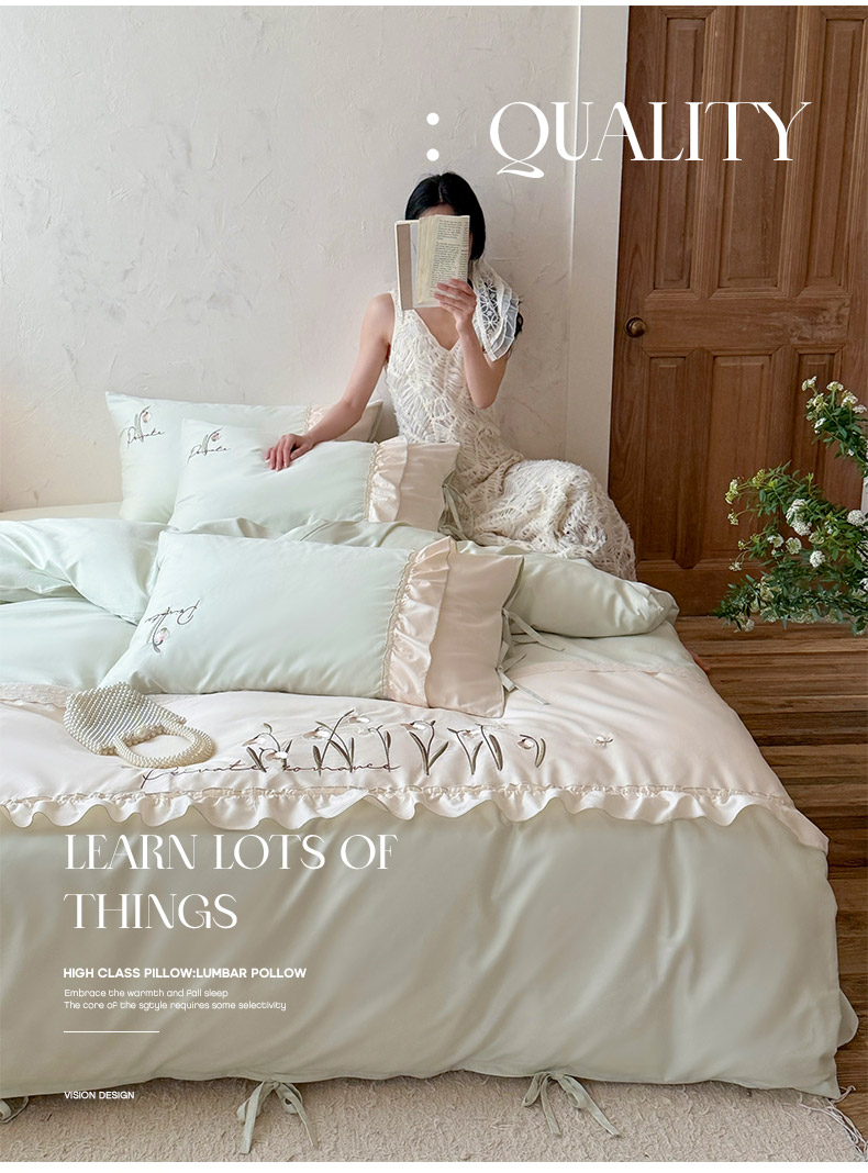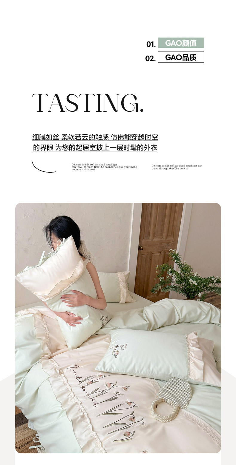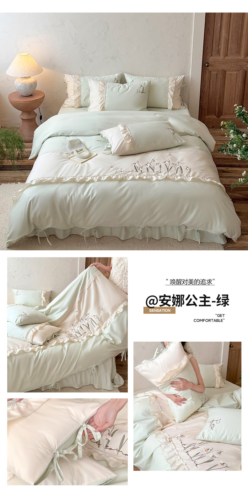 商品名称:艾唯希家纺 2026新款全棉纯棉公主风花边刺绣工艺四件套纯棉-安娜公主系列 安娜公主-绿