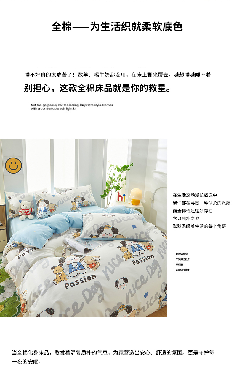 当前位置: 91家纺网 > 商品网购 > 床品套件 > 四件套 > 全棉普通四件套 > 黛妮雅 2026新款全棉印花床单款四件套(送买家秀)萌酷狗