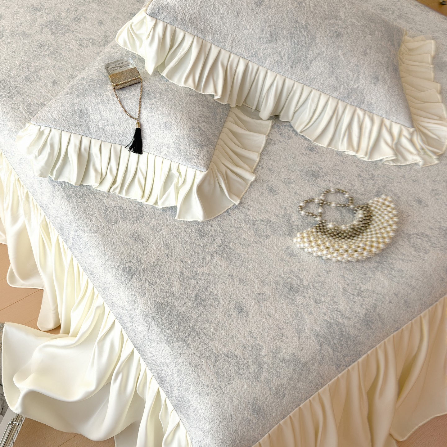 (总)孩子王家纺 2026新款法式风冰豆豆凉席夏天冰丝席凉感值过0.21夏季可机洗家用软席床裙款A,花园布鲁蓝,花园蜜桃粉,花园秋月咖,花园香薰紫,花园芝士黄,玫瑰暗夜灰,玫瑰薄荷绿,组合图仅供展示-不可下单