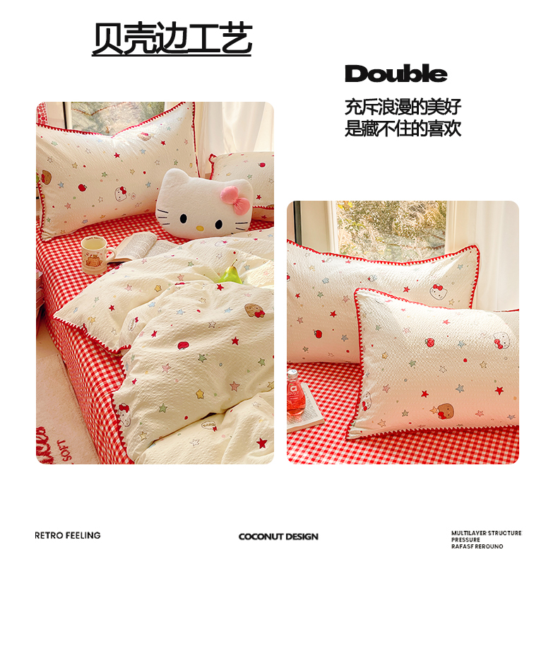 (总)玉海棠家纺 2025新款双层皱皱纱四件套,大脸喵,生日派对,芝士小猫,像素猫咪,点点草莓,夕颜,甜品猫,可爱喵星球,动物王国,焦糖樱桃,奶芙芙,青苹果乐园,星光草莓猫,炫彩独角兽,彼岸花,春风里,蛋糕小猫,动物狂欢会米,凯蒂猫,萌物家族,晴天,小确幸,芝士奶酪,蓝汐