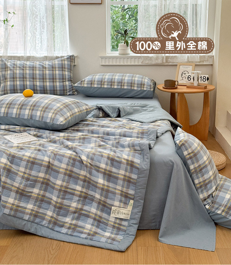 • 91家纺网 家纺一手货源 找家纺 (总)雯雨家纺 2026新款A类全棉色织里外全棉夏被,印象蓝,安格尔浅灰,安格尔浅蓝,巴洛咖,朵拉粉,朵拉兰,朵拉绿,粉细条,粉小格,光年灰,光年绿,海蓝大格,黄小格,灰小格,静初黄,蓝小格,米粒粉,米粒咖,米粒兰,米小格,莫尼兰,南国灰,遇见兰