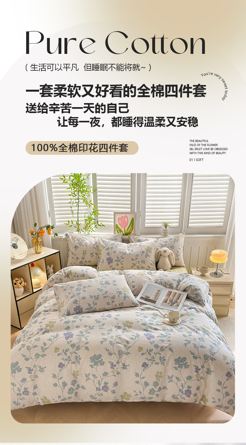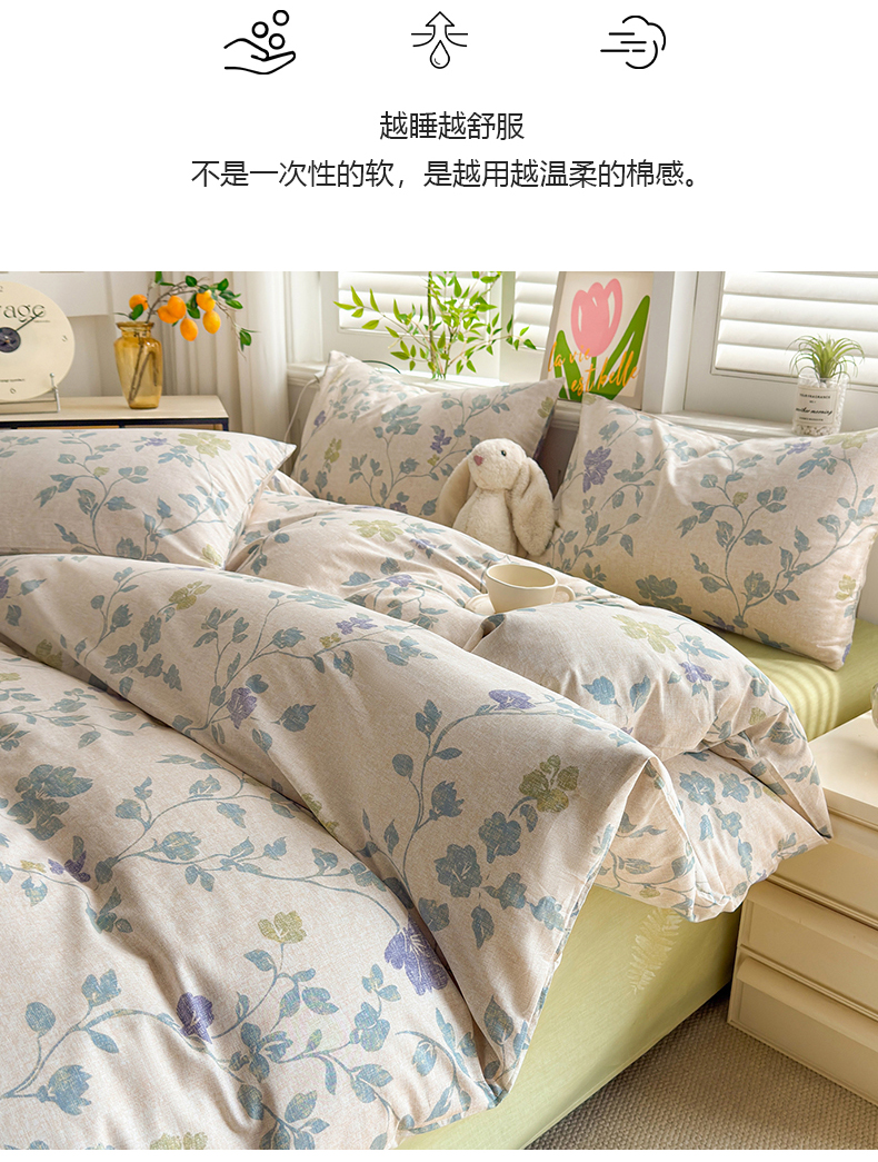 黛妮雅 2026新款AB版全棉印花单被套床单枕套 送买家秀 花间蓝