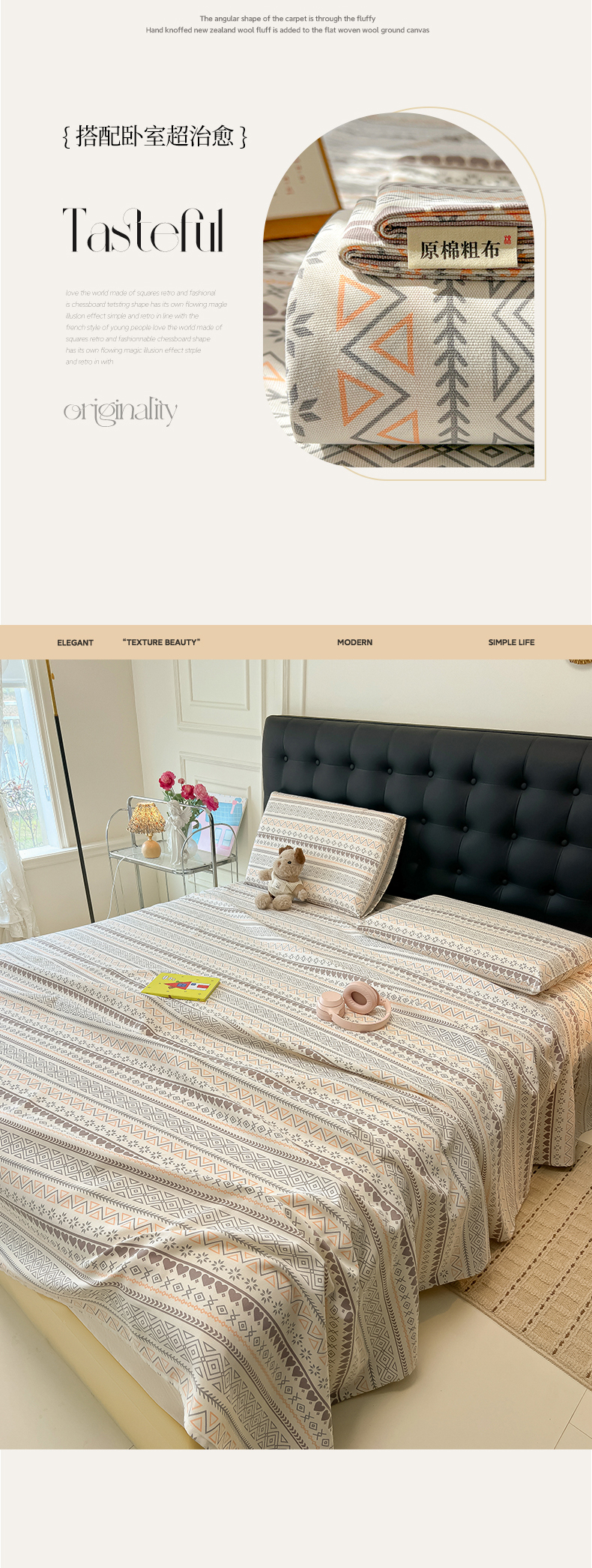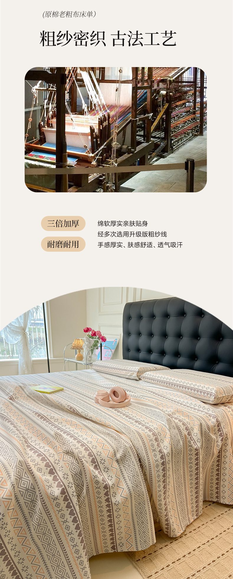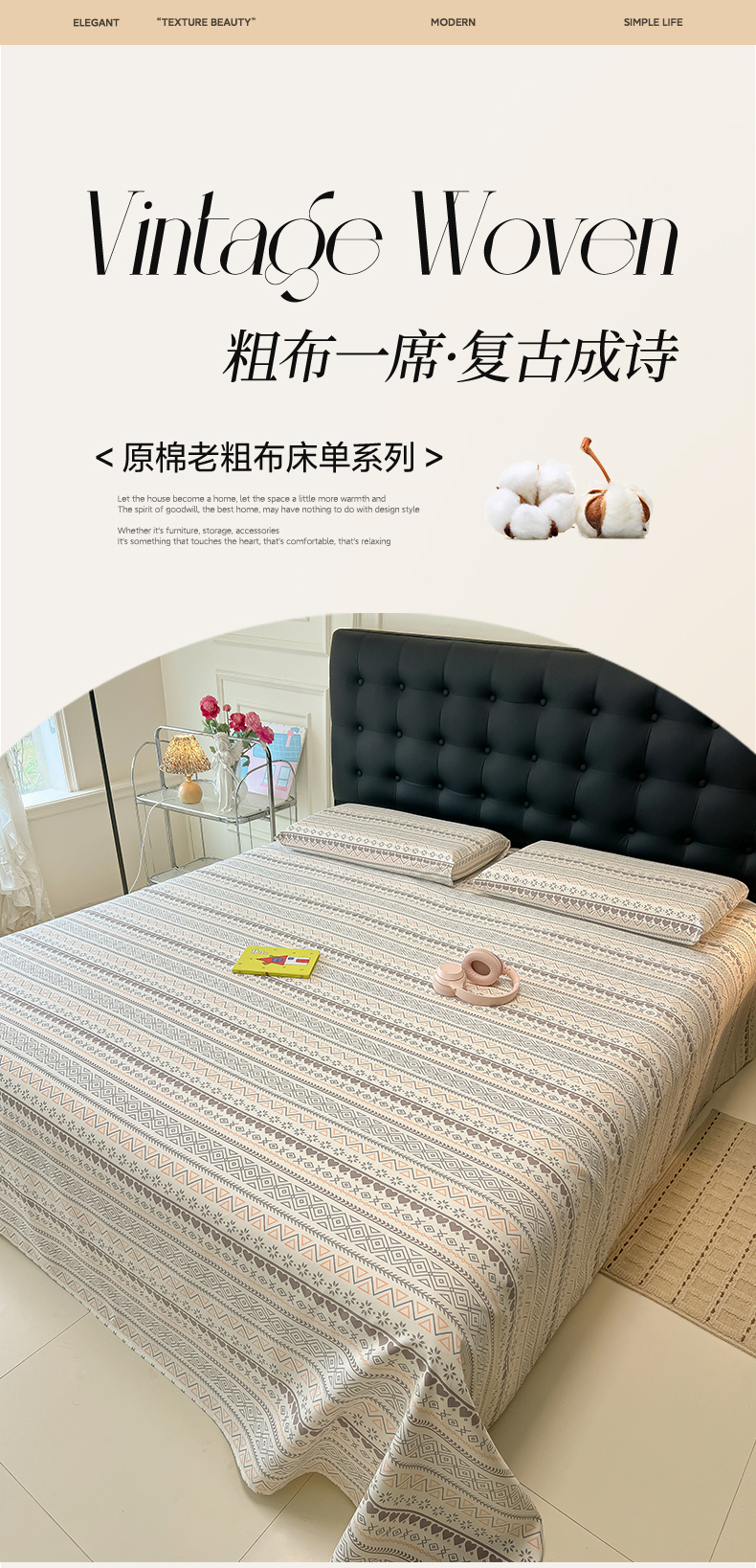 • 91家纺网 家纺一手货源 找家纺 韩巢家纺 2026新款老粗布床单凉席席子床单单件 逸趣【老粗布】