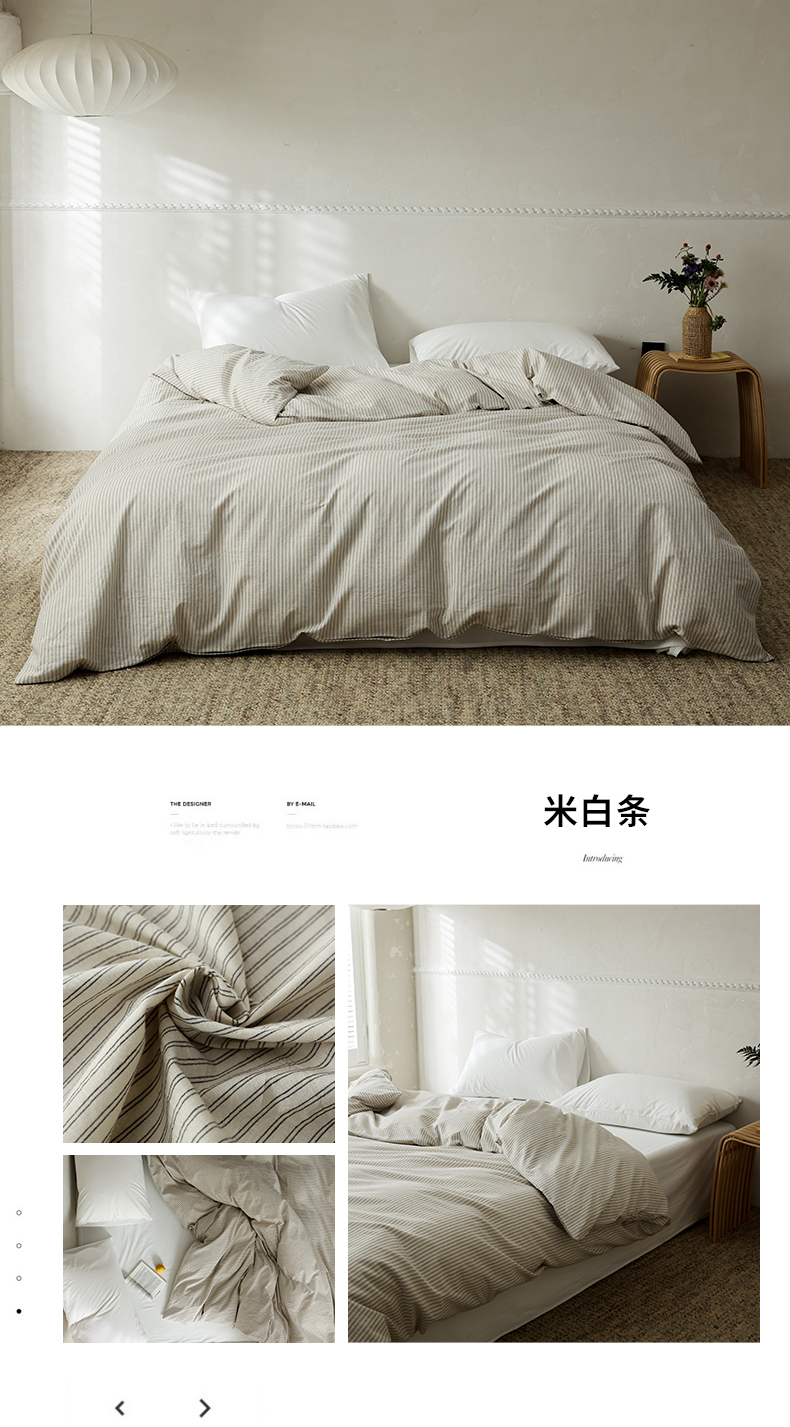 商品名称:棉眠 2026新款调色盘全棉纯棉水洗棉混搭单品系列-条纹单被套 米白条