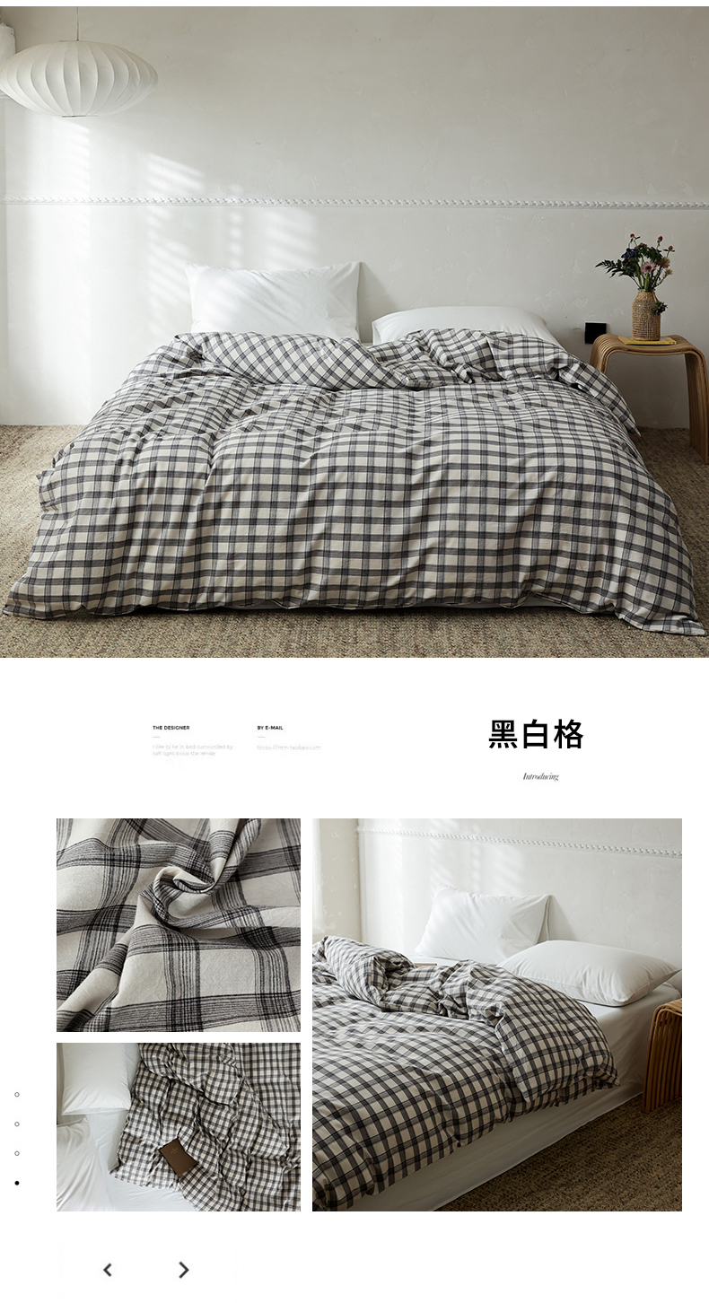 (总)棉眠 2026新款调色盘水洗棉混搭单品系列-格子单床笠,海盐格,黑白格,红格,焦糖格,组合图