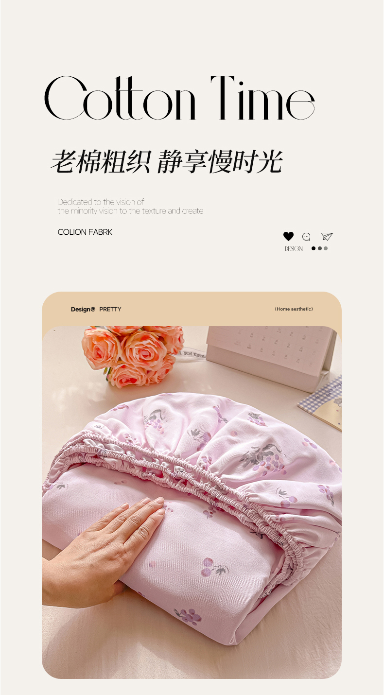 • 91家纺网 家纺一手货源 找家纺 韩巢家纺 2026新款老粗布床笠春夏季凉席席子热销款防滑床笠单件 葡萄七分甜【老粗布】