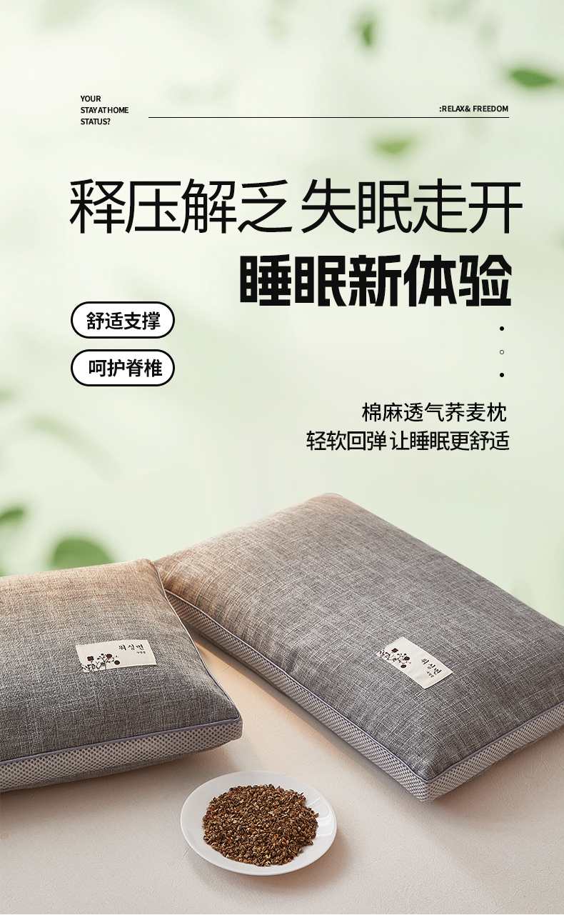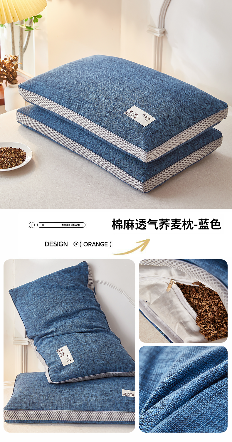 (总)梦叶草 2026新款棉麻贴布绣透气立体网荞麦枕 枕头枕芯,棉麻透气荞麦枕-灰色,棉麻透气荞麦枕-咖色,棉麻透气荞麦枕-蓝色,棉麻透气荞麦枕-绿色