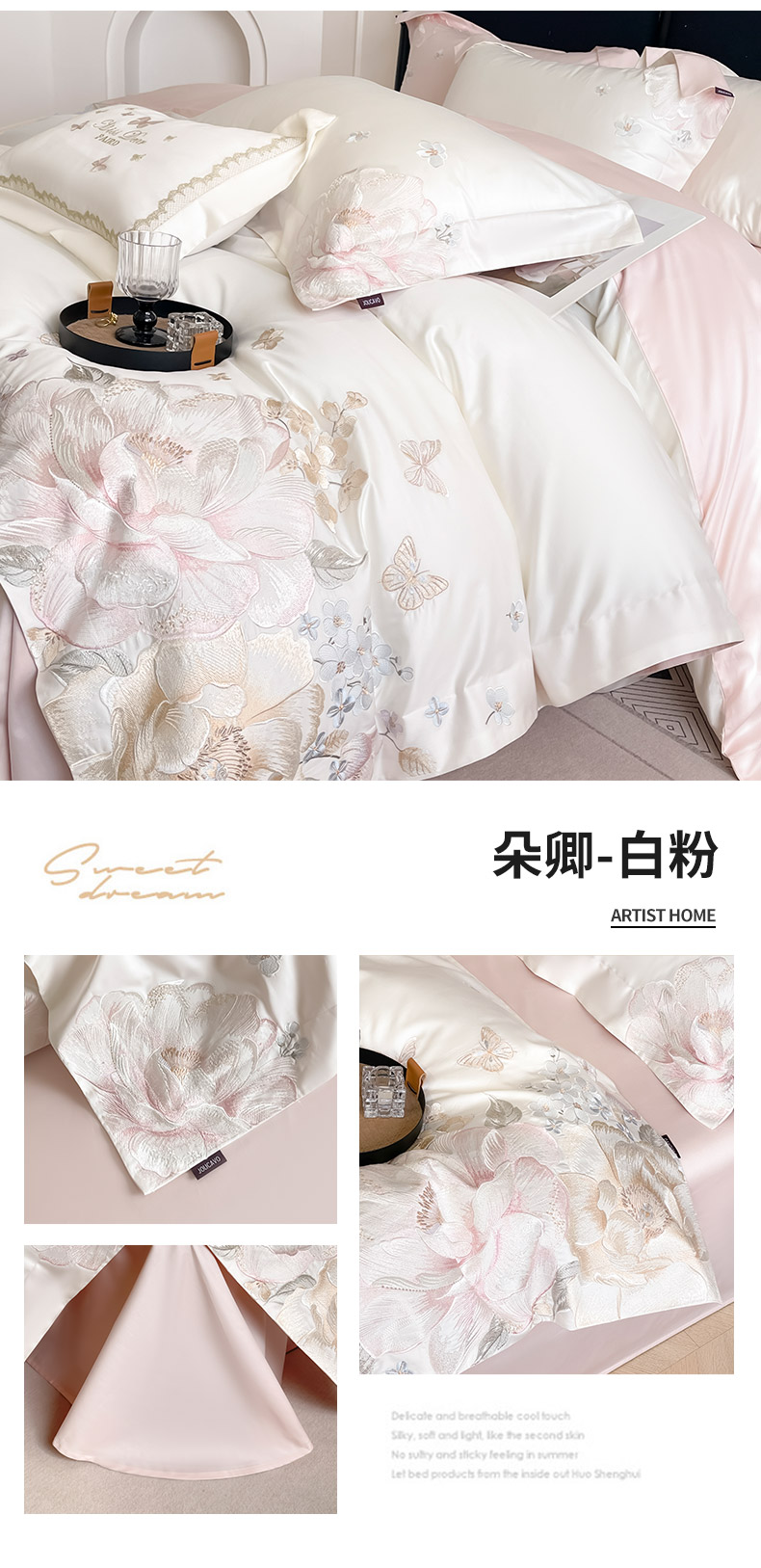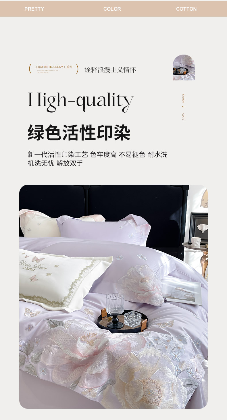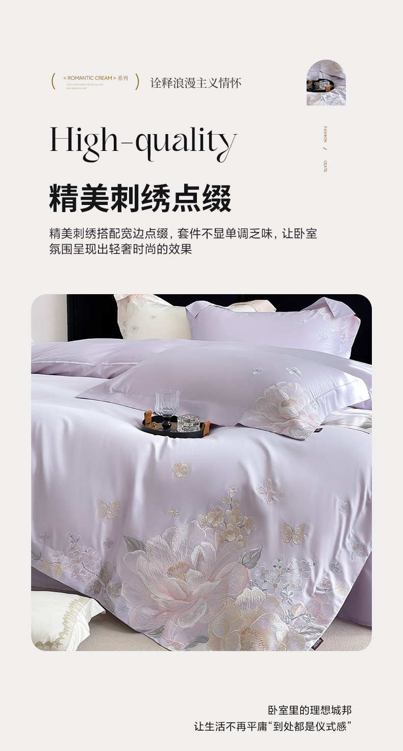 当前位置: 91家纺网 > 商品网购 > 床品套件 > 四件套 > 长绒棉四件套 > (总) 2026新品A类100支贡缎长绒棉纯棉四件套全棉重工刺绣全工艺被套床单床笠高端轻奢风床上用品-朵卿