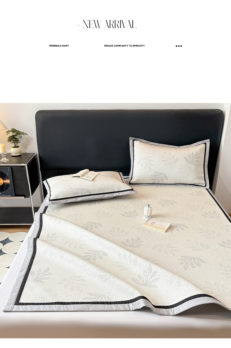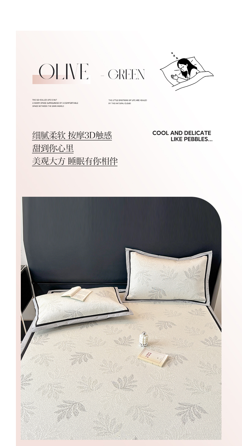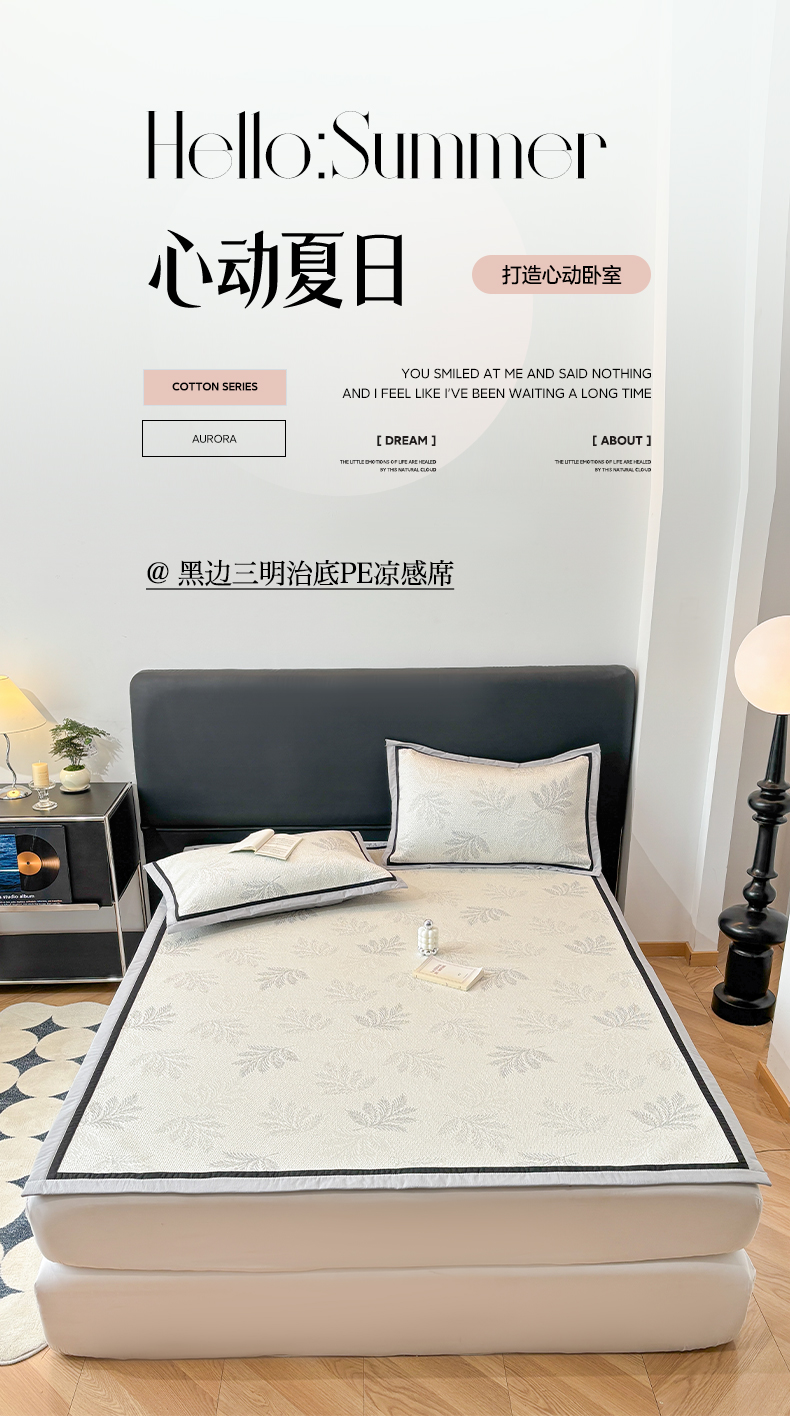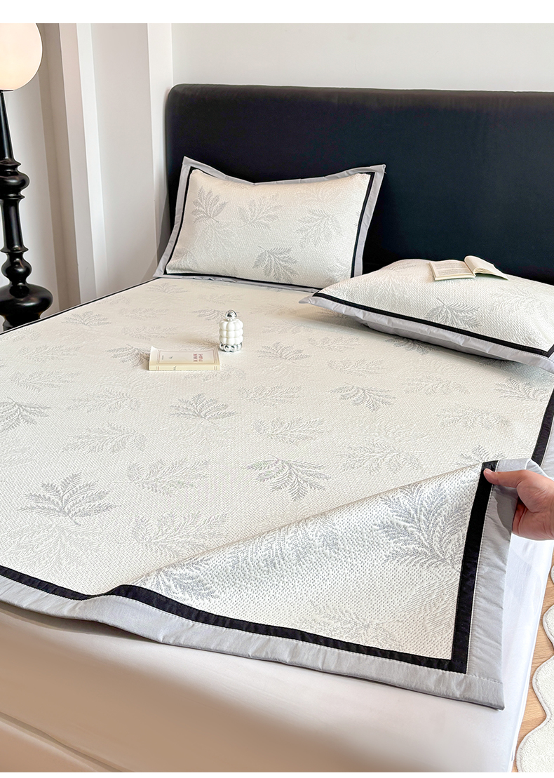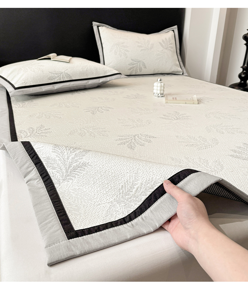(总)雅居纺家纺 2026新款A类加厚三明治底黑边PE凉感席,枫叶-粉,枫叶-灰,枫叶-卡其,枫叶-蓝,梦影-粉,梦影-灰,梦影-绿,叶韵-灰,叶韵-卡其,圆舞-粉