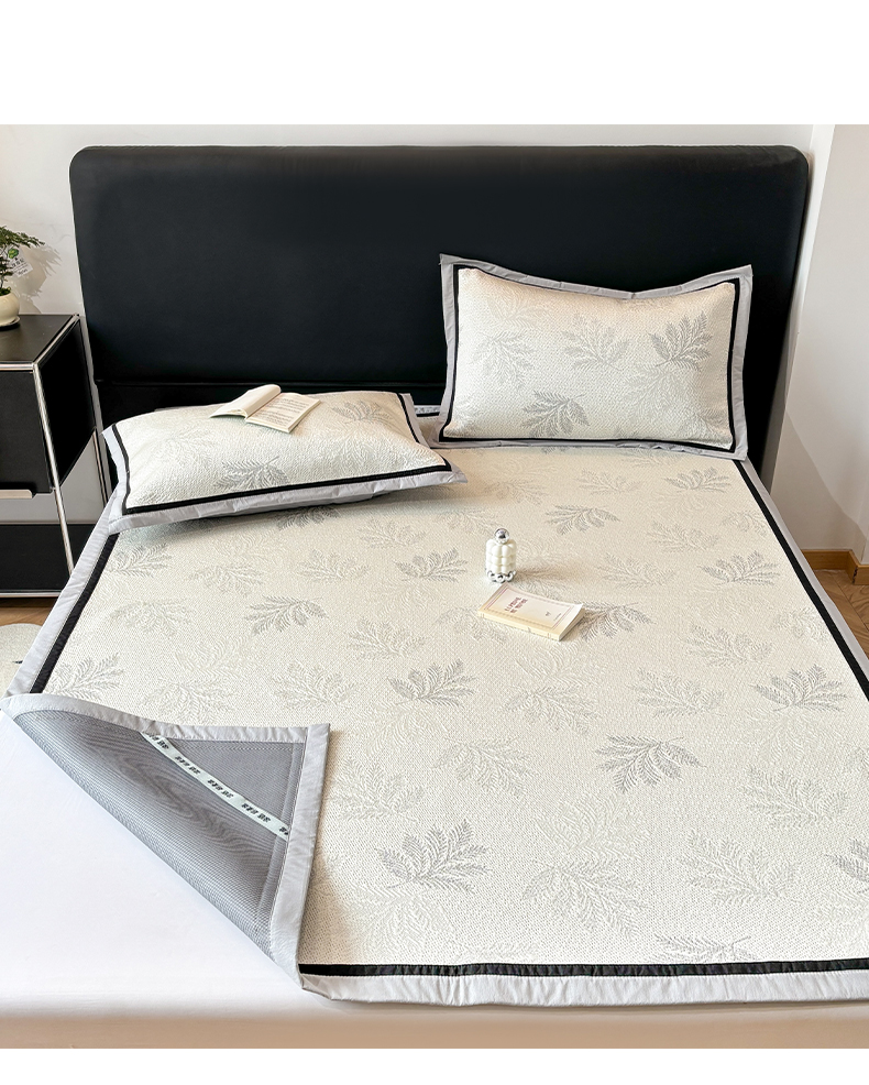 商品名称:雅居纺家纺 2026新款A类加厚三明治底黑边PE凉感席 枫叶-灰